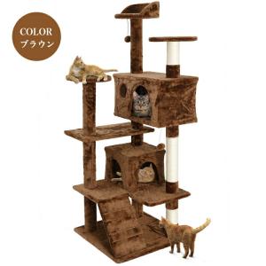 キャットタワー 据え置き 高さ135 省スペース キャットツリー 猫タワー 据え置きタイプ 天然サイザル麻 爪とぎ柱 猫部屋2つ付き 多頭飼い ブラウン