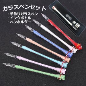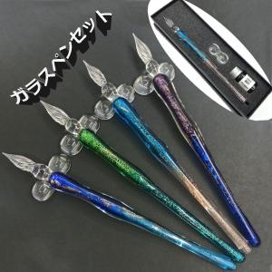 ガラスペン 万年筆 硝子ペン 付けペン 手作り インクボトル付き ペン置き付き 3点セット ギフト プレゼント 送料無料 グラデーション