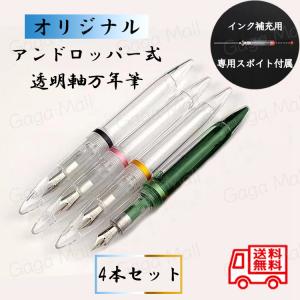 透明万年筆 ペン 初心者 子供用 透明軸 スケルトン オリジナル アイドロッパー方式 専用スポイト付き 4本セット