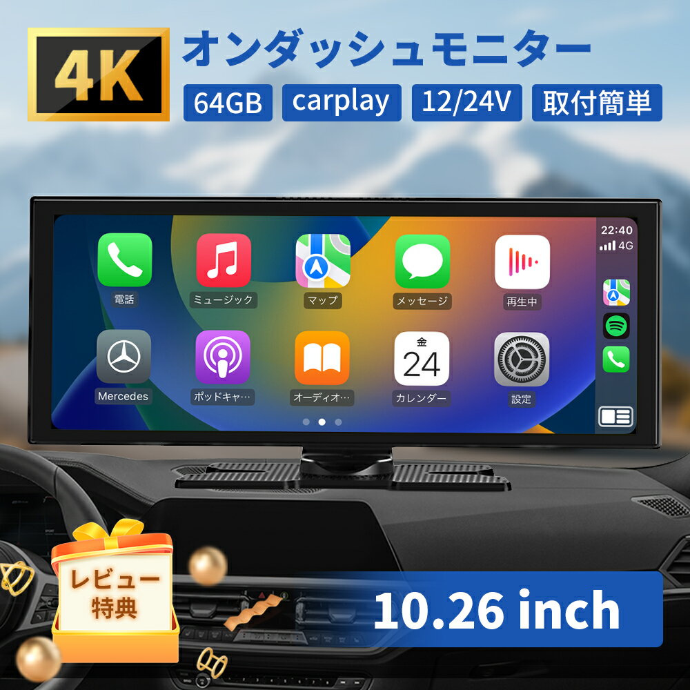 ディスプレイオーディオ オンダッシュモニター carplay 4Kフロントカメラ 10インチ ポータブル カーオーディオ CarPlay&Android Autoに対応 カーナビ オーディオ一体型ナビ ミラーリング対応64GBカード含み アップルカープレイ 分離式