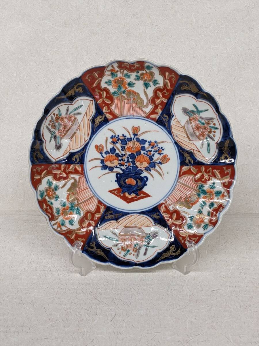 【珍品堂】1円から AB34D-D 有田焼 人間国宝 今泉今右衛門窯 在銘 染錦 色鍋島芙蓉絵額 赤絵 大皿 径26cm 共箱 木箱 和食器 時代物 骨董品