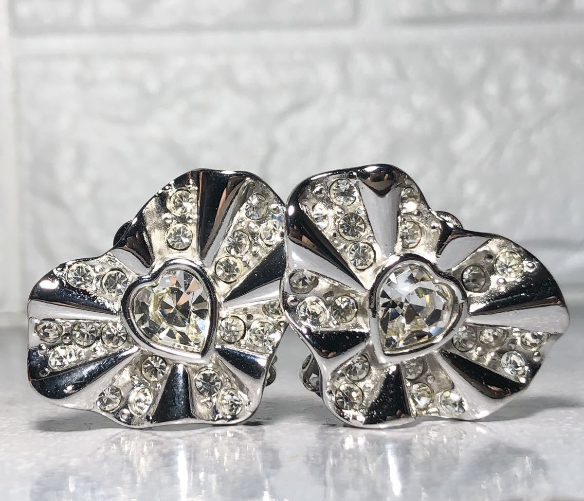 1円 ■美品■ GIVENCHY ジバンシィ ラインストーン パール ハート クリップ式 イヤリング アクセサリー レディース ゴールド系 FW0064
