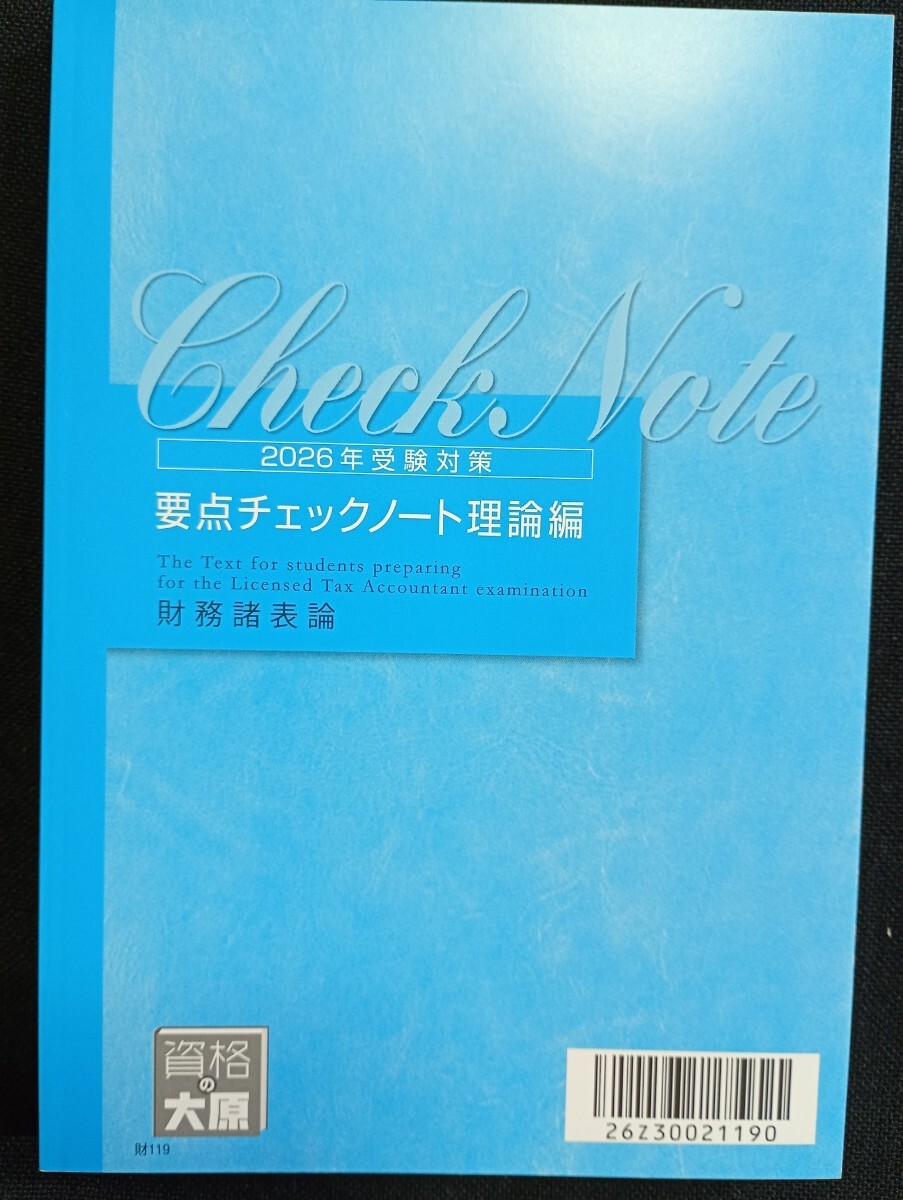 2026年 税理士 大原資格 財務諸表論 要点チェックノート 理論編