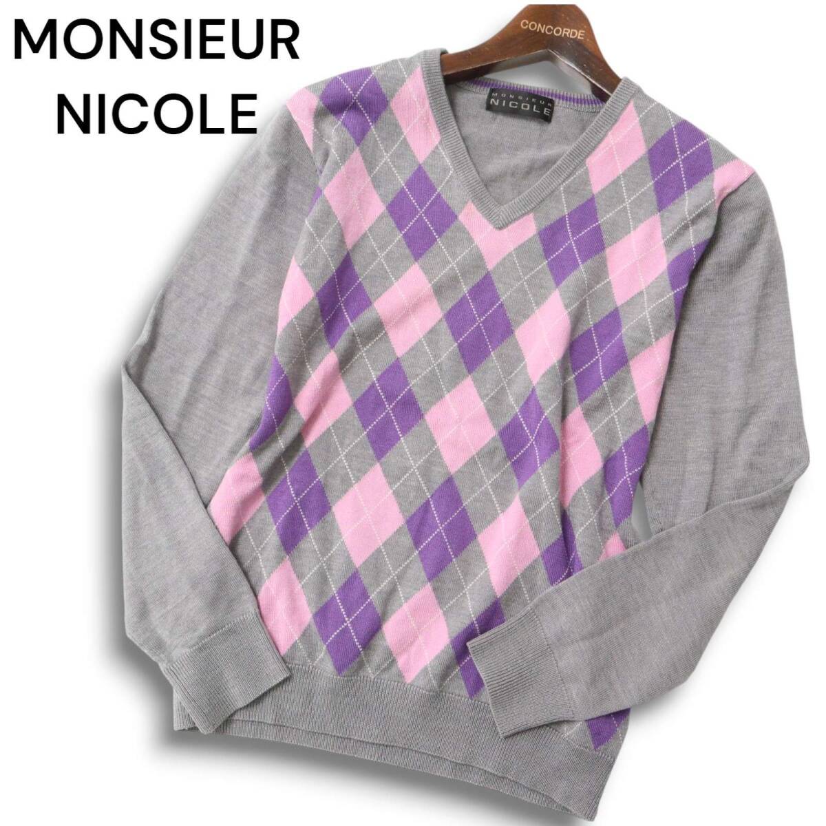 【新品 22AW】 ex/tra MONSIEUR NICOLE ムッシュ ニコル ウール混 ケーブル編み ニット セーター Sz.46 メンズ 黒 未使用
