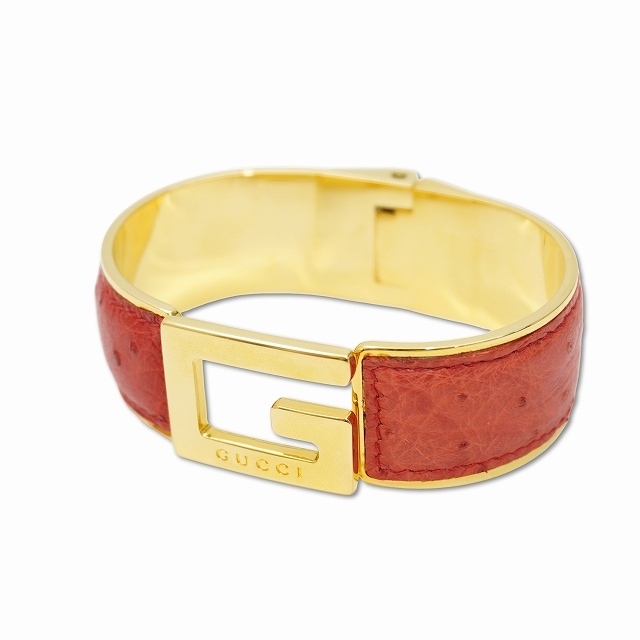 グッチ GUCCI ヴィンテージ ゴールドメッキ/オーストリッチレザー Gモチーフ バングル GOLD/RED(ゴールド/レッド) レディース