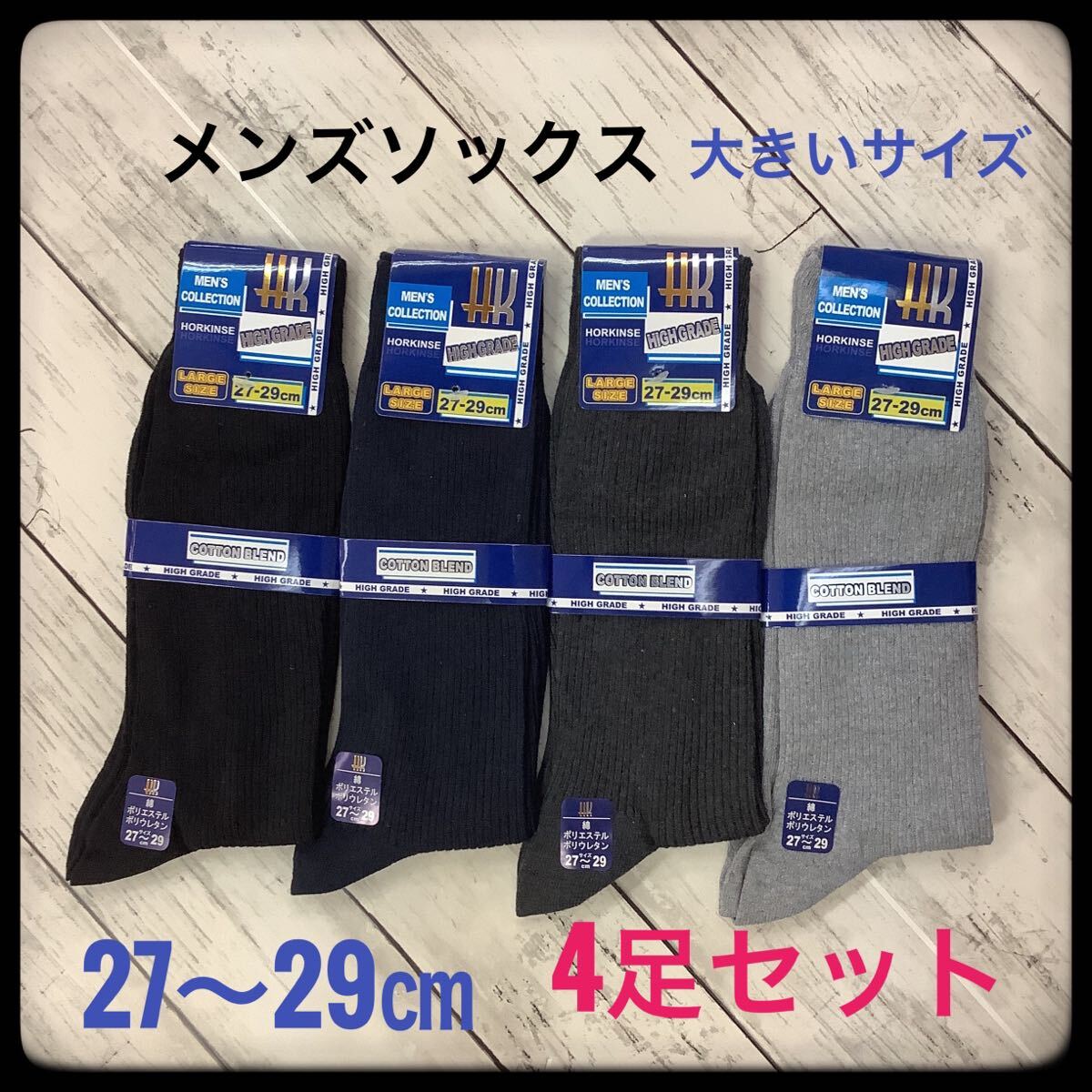 メンズソックス スポーツ リブ 綿混 4足 セット 27〜29㎝ 大きいサイズ 靴下 ビジネスソックス ブラック ネイビー チャコールグレー グレー