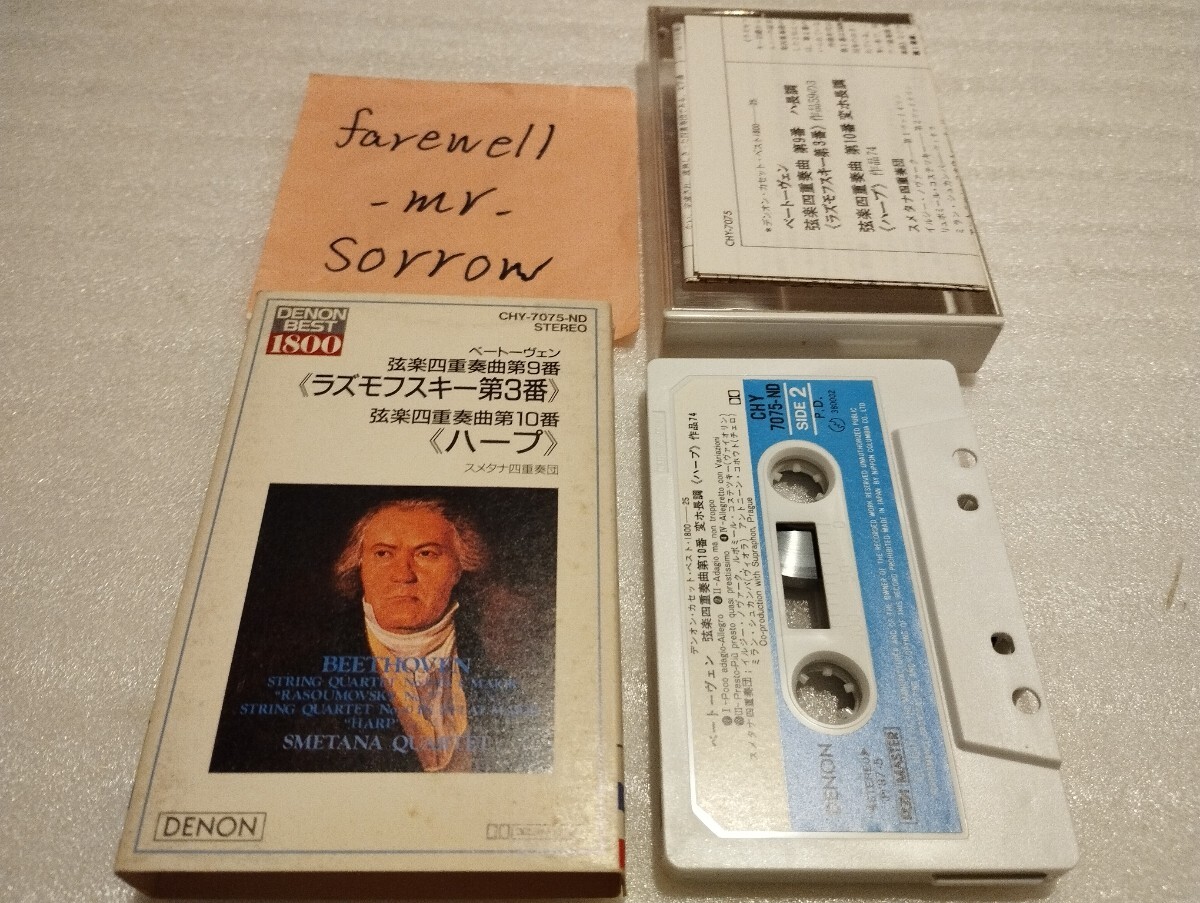 スメタナ四重奏団 ベートーヴェン 弦楽四重奏曲第9番 ラズモフスキー第3番 カセットテープ DENON CHY-7075-ND 第10番 ハープ PCM MASTER