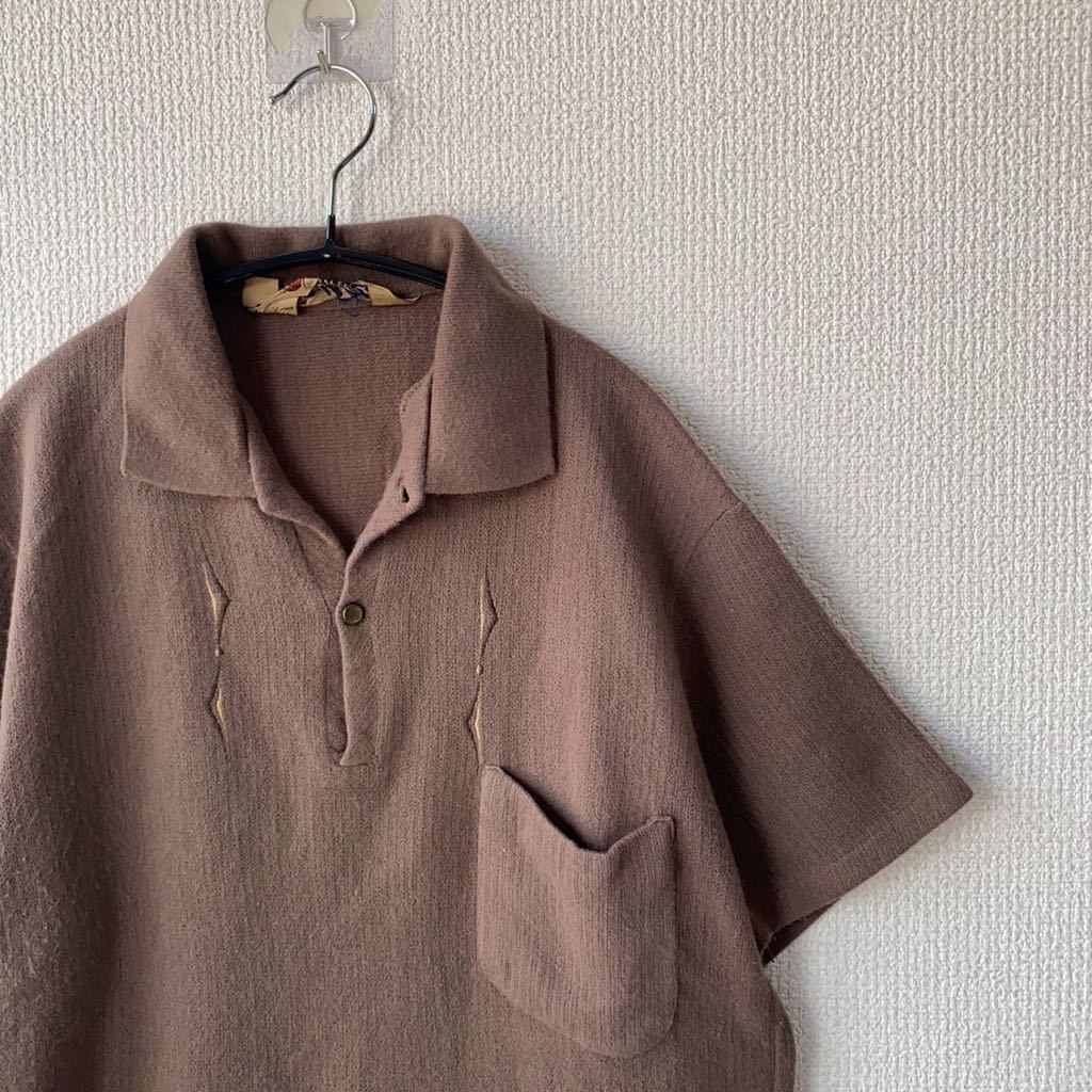 ビンテージ maler ニット ポロシャツ M 刺繍 50s60s ロカビリー
