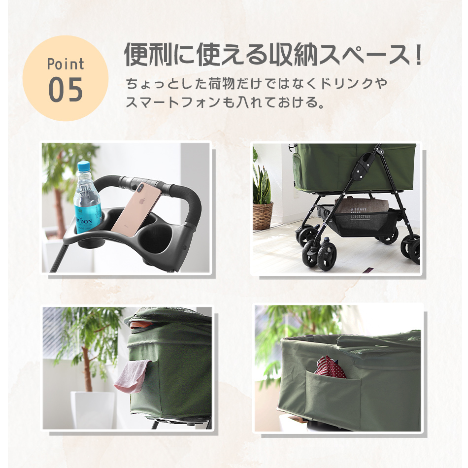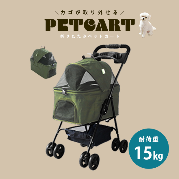 Product name: ペットカート 4輪タイプ 折りたたみ バスケット 取り外し可能 子犬 安定 通院 散歩 ペット用カート 軽量 カート 耐荷重15kg オリーブ