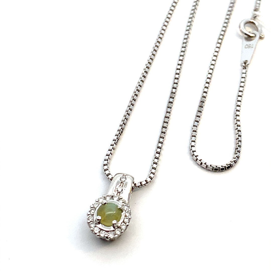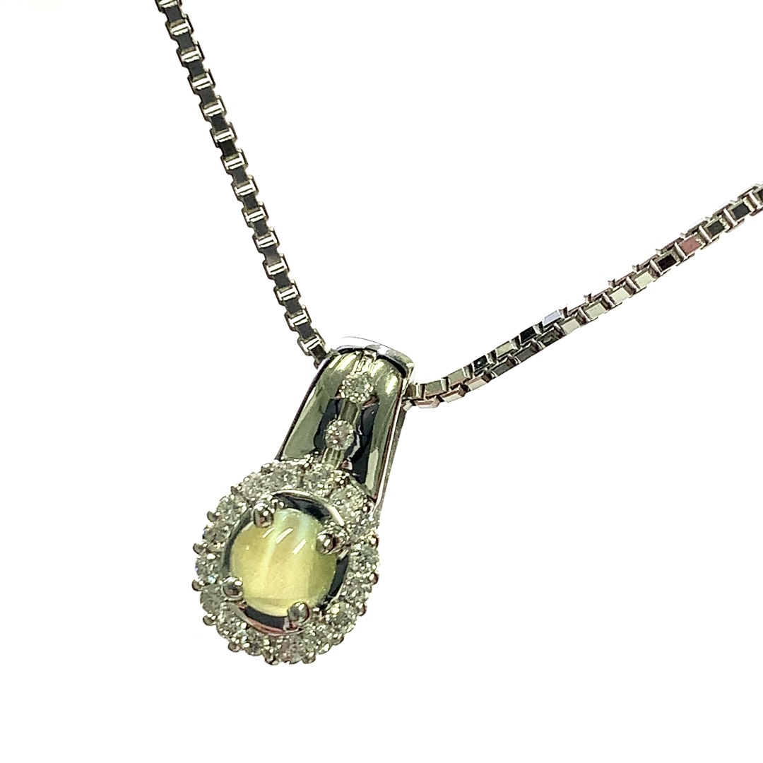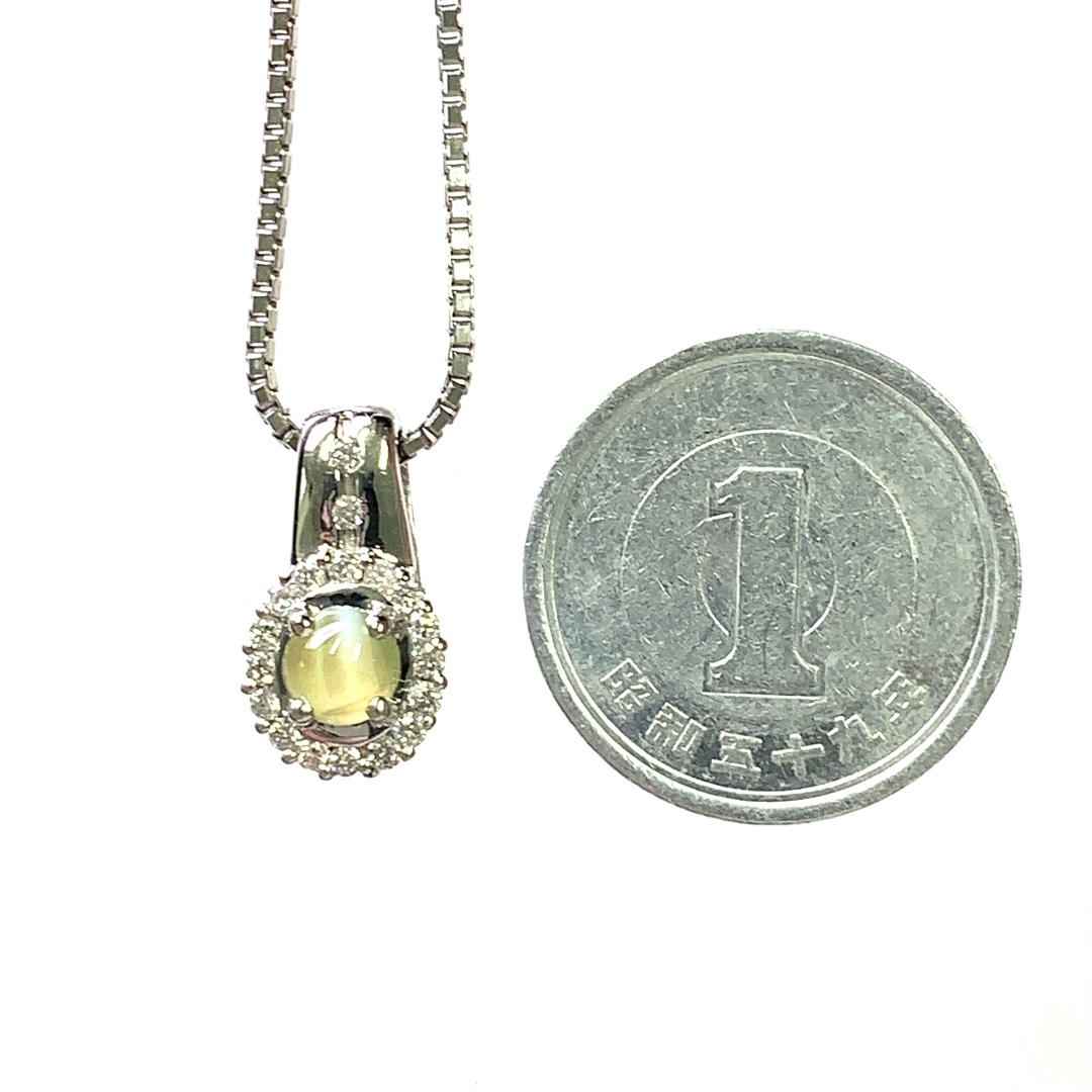 21610 キャッツアイ 0.47ct ネックレス ペンダントトップ ホワイトゴールド K18WG プラチナ PT900 40cm 6.8g