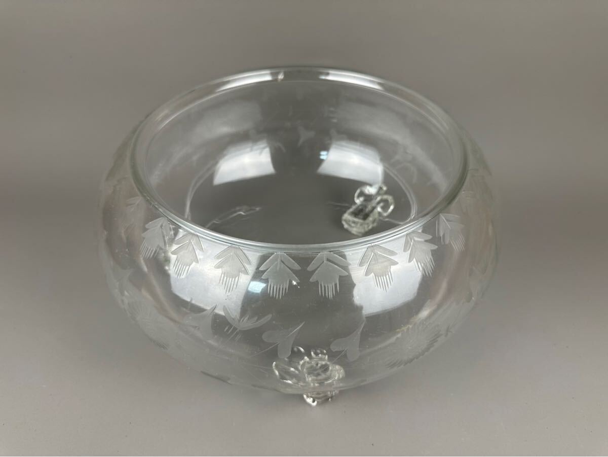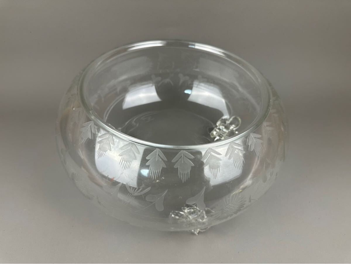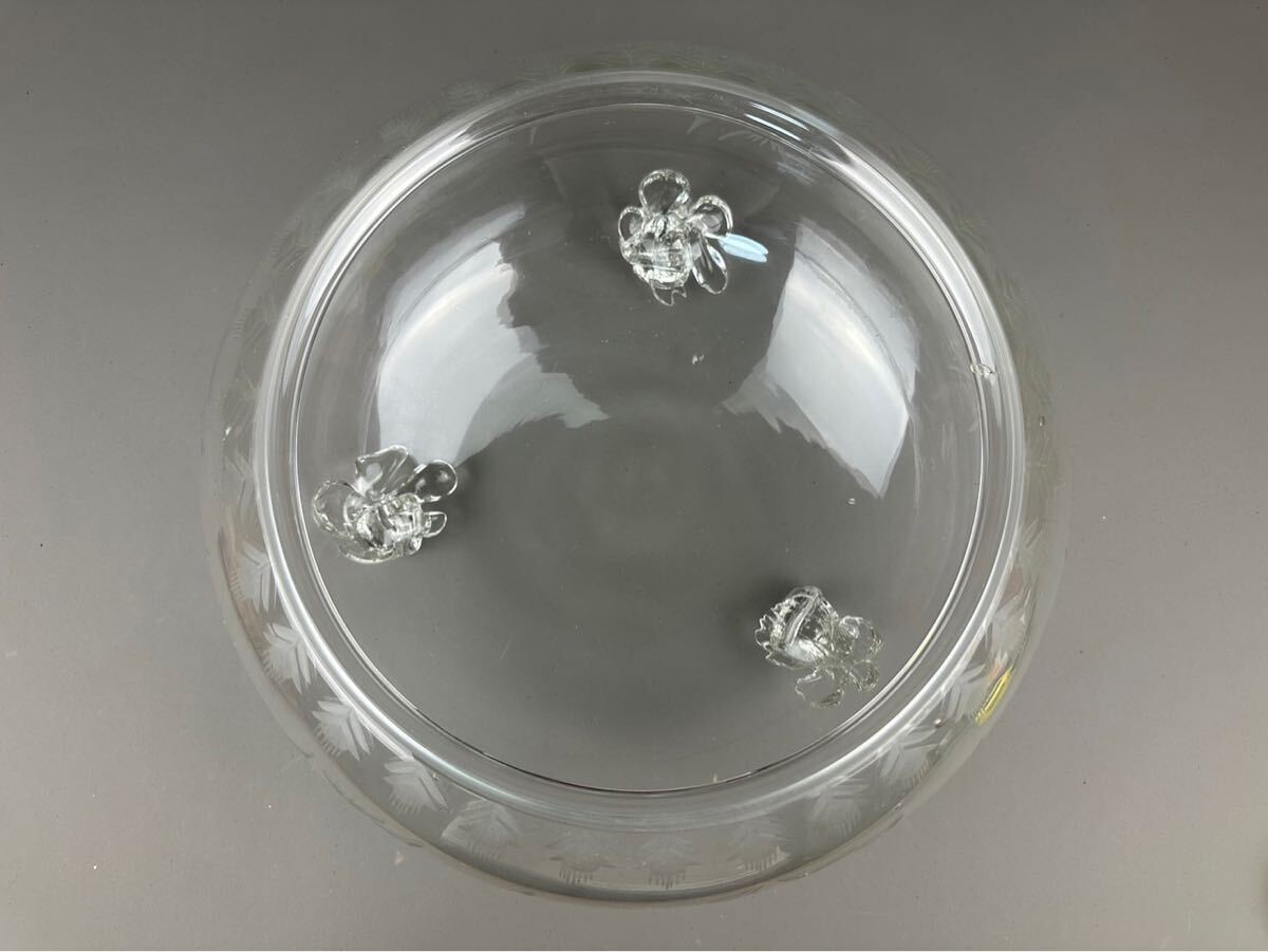 昭和レトロ 金魚鉢 インテリア 高さ×直径 約19×24cm 三つ足 切子 メダカ鉢 ガラス製 工芸硝子 アンティーク 置物