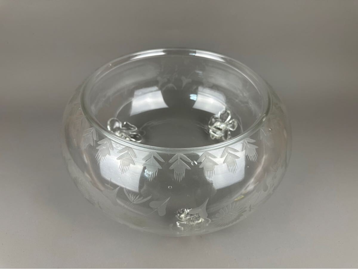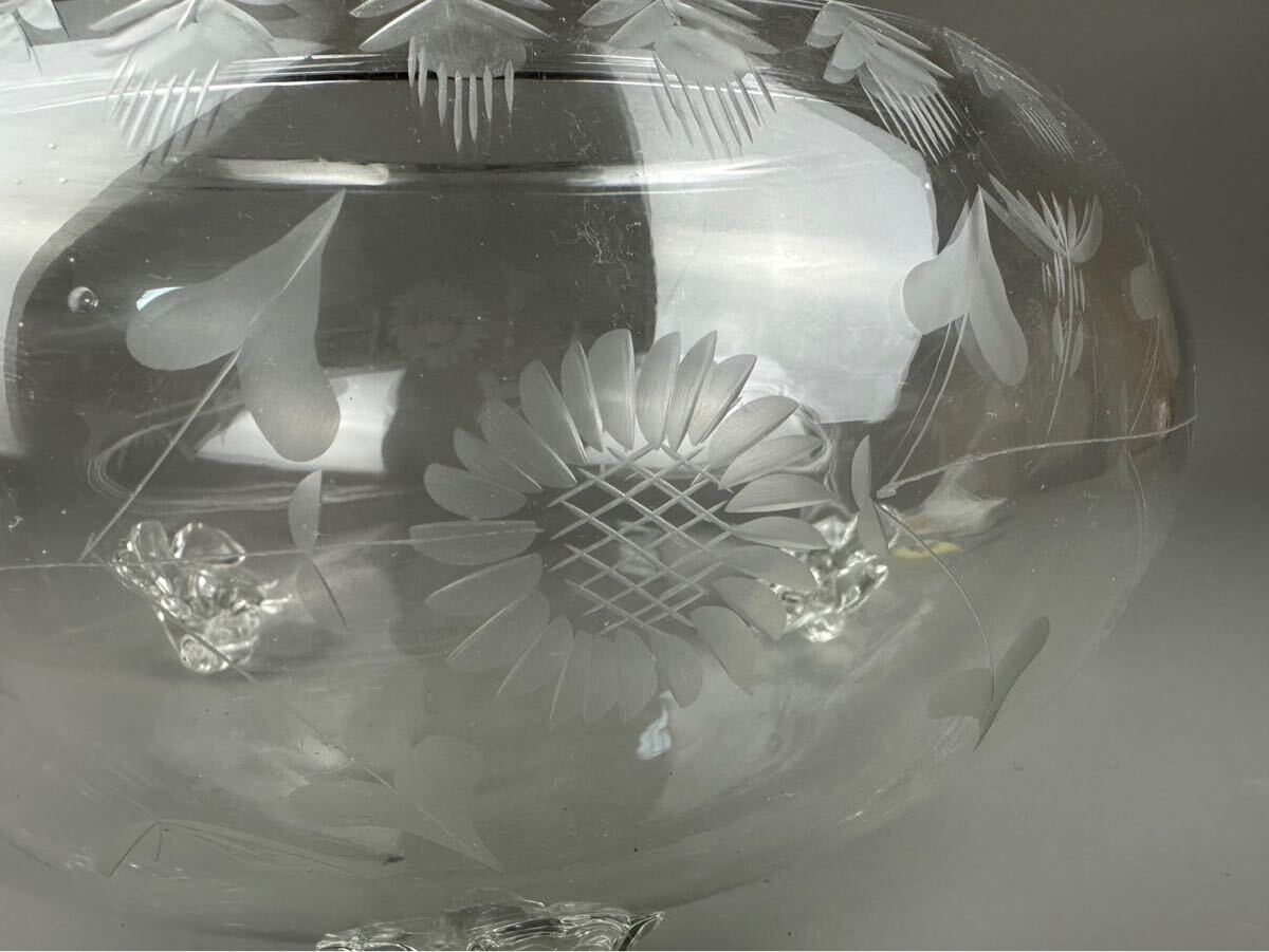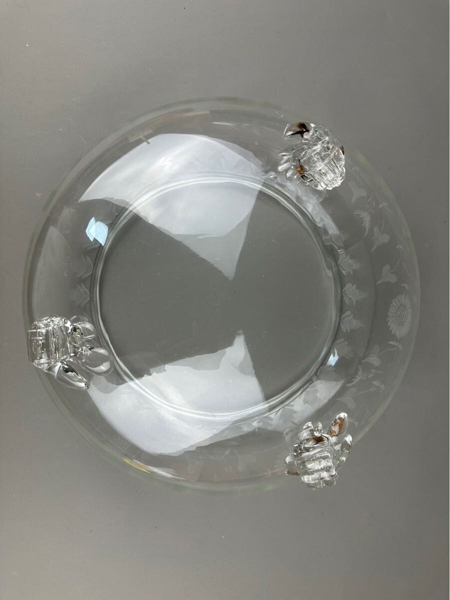 昭和レトロ 金魚鉢 インテリア 高さ×直径 約19×24cm 三つ足 切子 メダカ鉢 ガラス製 工芸硝子 アンティーク 置物