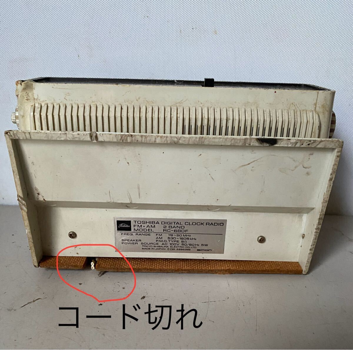 TOSHIBA デジタル クロックラジオ FM・AM 2バンド RC-680F 昭和レトロ 当時物【コード切れジャンク品】