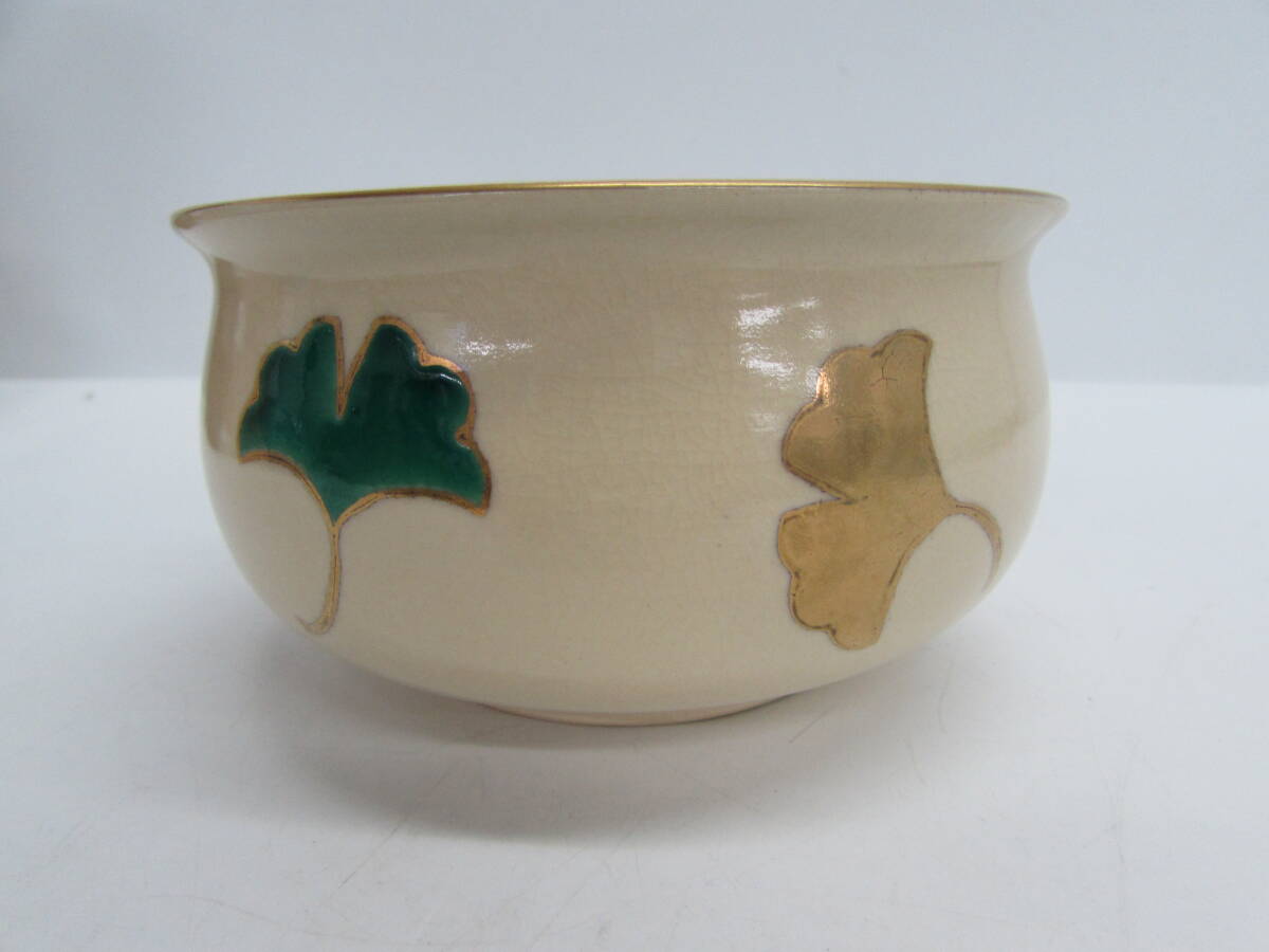 Product name: 京焼 定靖造 建水 茶こぼし 茶器 茶道具 銀杏図 陶器製 口径11.5㎝ 高さ7㎝