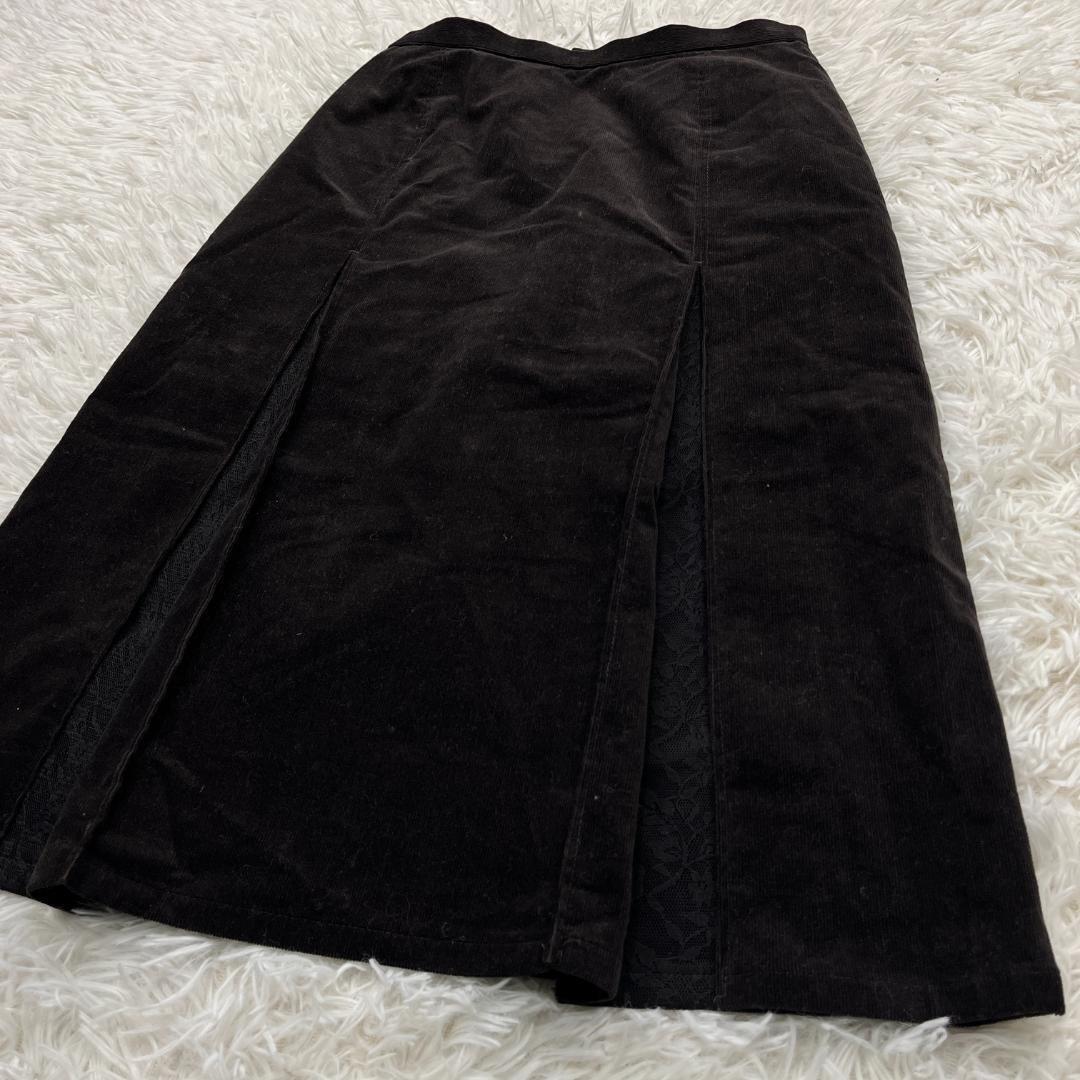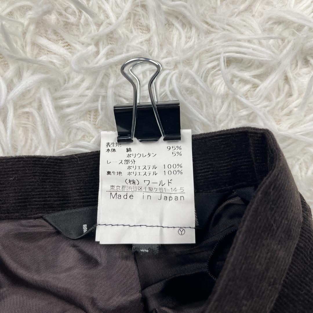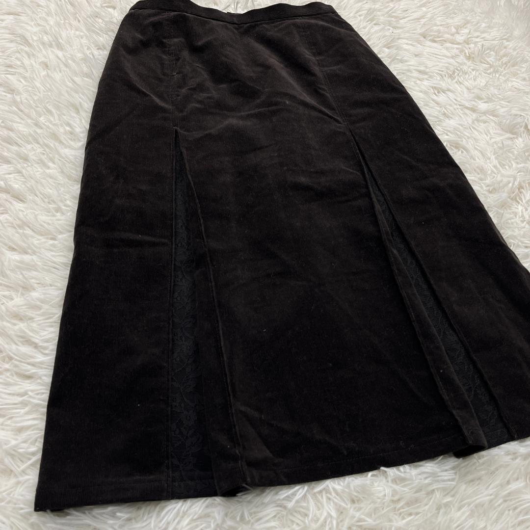 Product name: 【1456】INDIVI インディヴィ 07 ダークブラウン コーデュロイ レース プリーツスカート ひざ丈スカート 秋冬 綿 日本製 上品