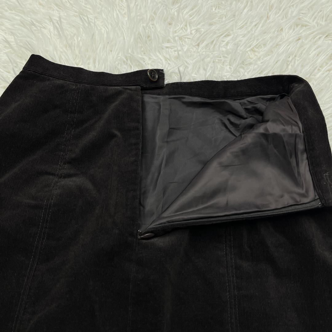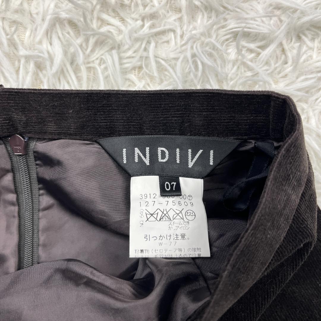 【1456】INDIVI インディヴィ 07 ダークブラウン コーデュロイ レース プリーツスカート ひざ丈スカート 秋冬 綿 日本製 上品