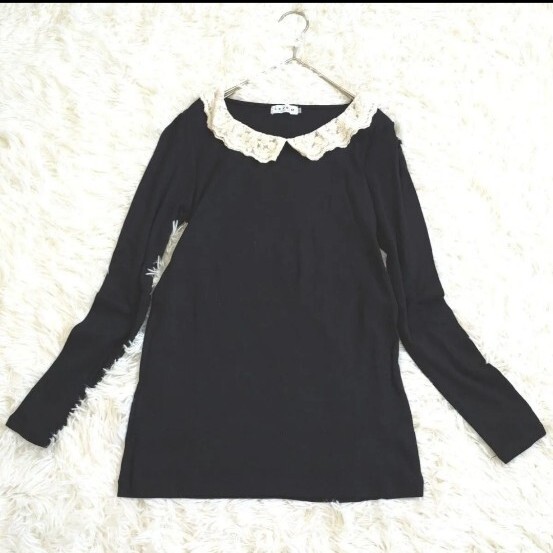 Product name: ローリーズファーム LEPSIM 長袖トップス カットソー レース襟 ガーリー 長袖カットソー ブラック 黒 L