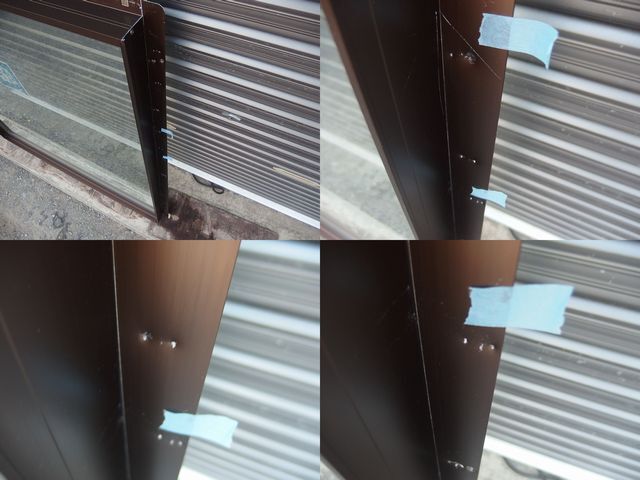 9枚目の画像で、外観左側の縦枠に、タッカーの針の穴が開いてます。