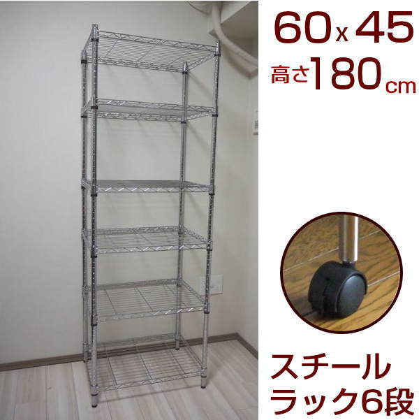 Product name: メタルシェルフ スチールラック キャスター付 6段 幅60 奥行き45 高さ180cm 収納棚 ワイヤーラック スチールシェルフ オープンラック
