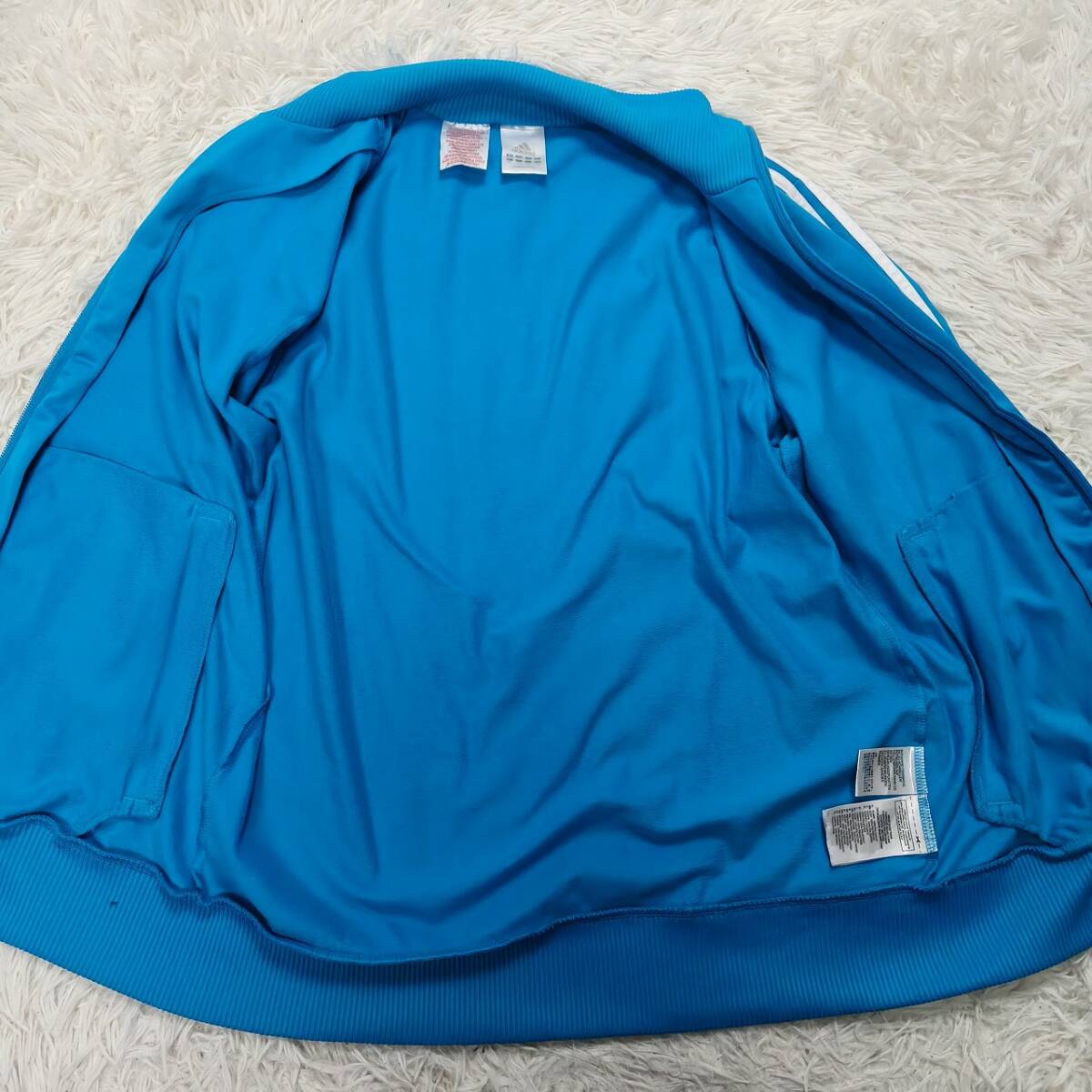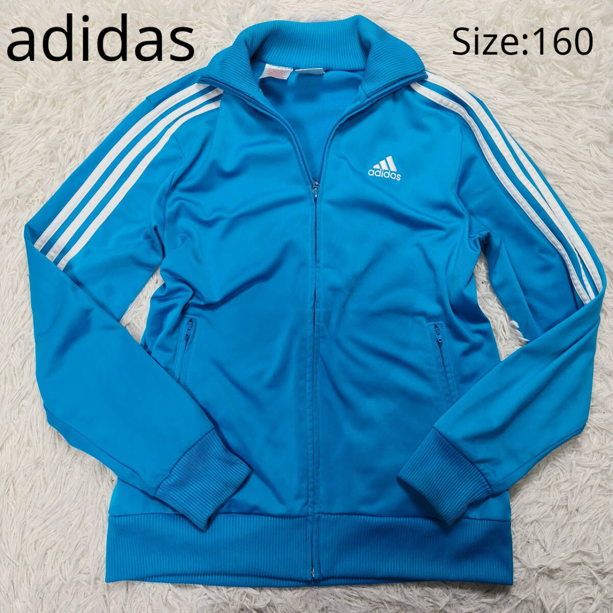 adidas アディダス ジャージ トラックジャケット サイズ160 刺繍ロゴ ブルー ホワイト ライン 検:あのちゃん