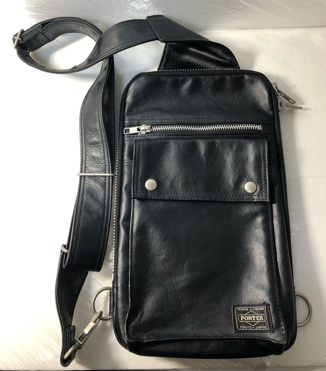 PORTER ポーター 吉田カバン フリースタイル スリング ショルダー ボディバッグ 黒 ブラック ※キズ有り