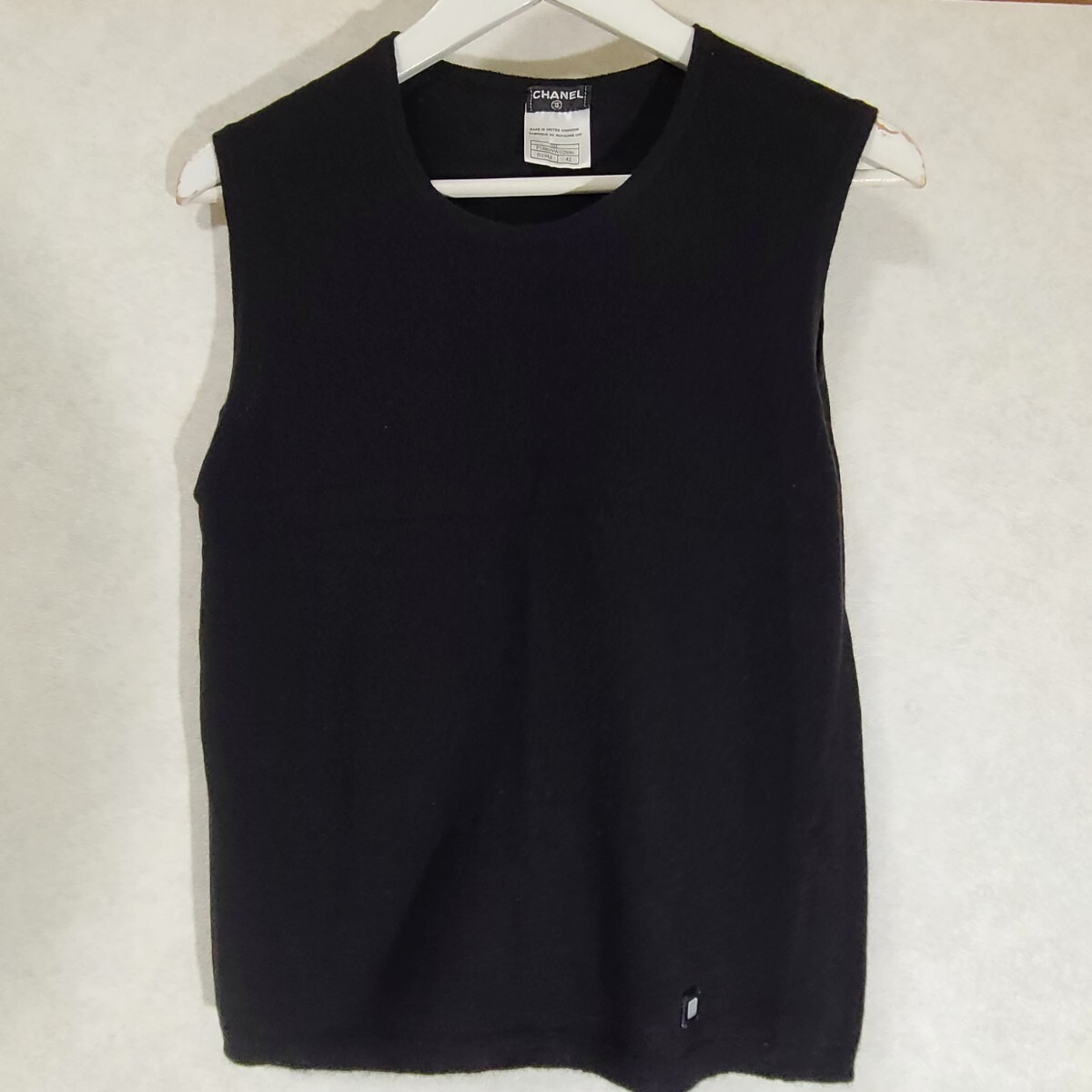 CHANEL シャネル/カシミヤアンサンブルニット42サイズ 正規品 ブラック 縁はネイビー