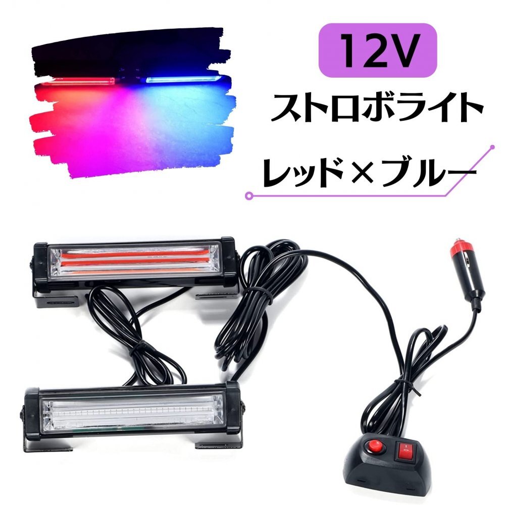 ストロボ ライト 赤×青 車用 緊急点滅ランプ 警告灯 非常灯 蛍ランプ スイッチ付き12V LED レッド×ブルー 交互