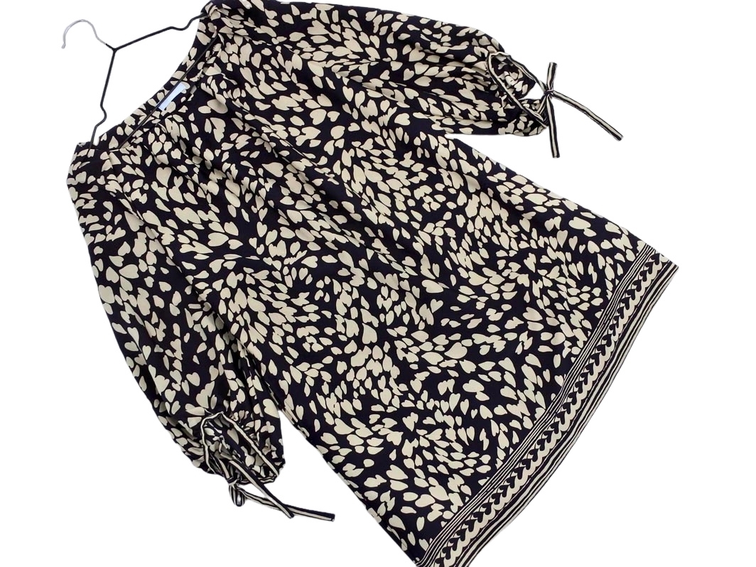 Product name: FREE’S SHOP フリーズショップ 総柄 チュニック Iライン ワンピース sizeM/ライトベージュx紺 ■◇ ☆ fcc4 レディース
