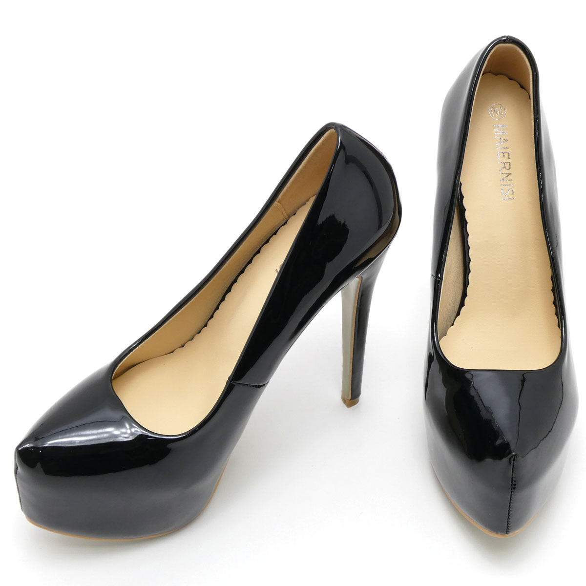 新品 大きいサイズ パンプス ブラック 26cm 131415-42 エナメル調 前厚底ストーム ハイヒール