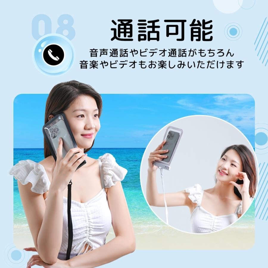 透明度に優れるPVC素材が採用され、防水ケースに入れたままスマホの操作をスムーズに行えます。