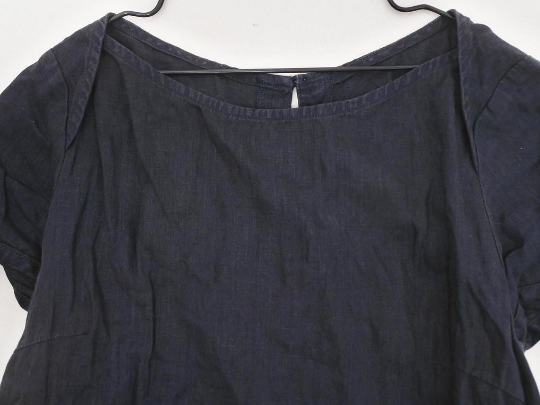 ネコポスOK nimes ニーム リネン100% ブラウス シャツ 濃紺 ■◆ ☆ fea9 レディース