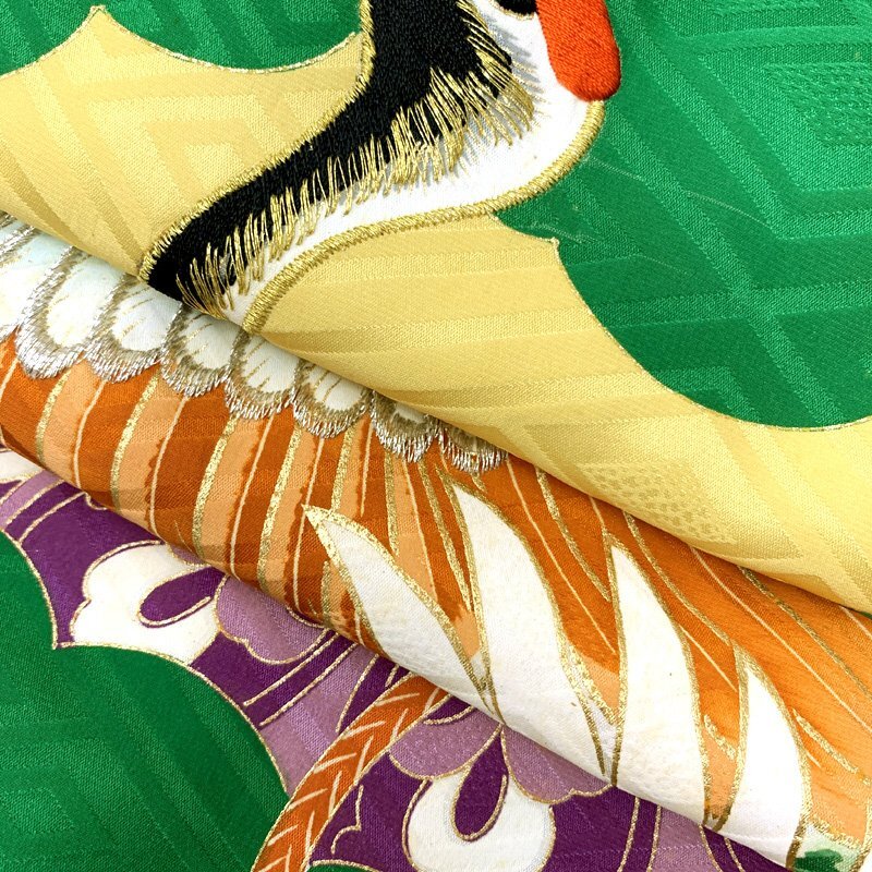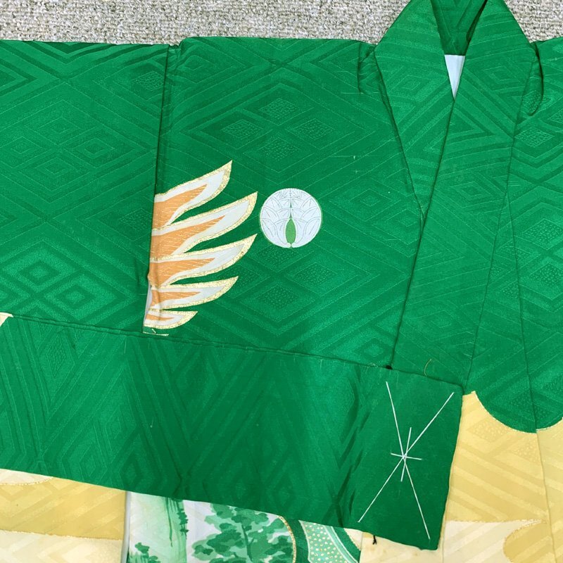 Product name: □きものマーチ□お宮参り セミアンティーク 男児 祝い着 着物 産着 掛け着 熨斗目 鶴 緑□状態良好 505ay25