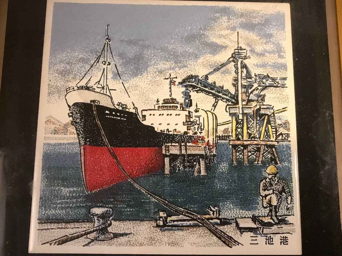 SS-7325■送料込■陶板 額 壁掛け 船 三池港 海 絵画 美術品 インテリア アンティーク レトロ 593g●額に傷あり/くATら