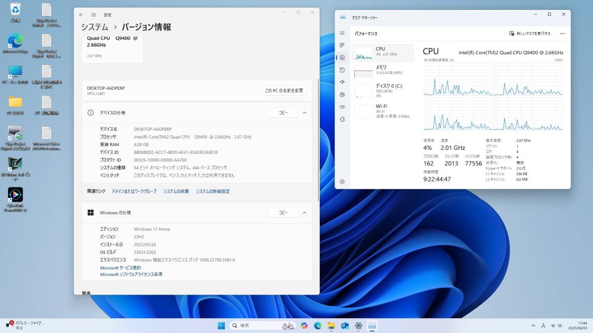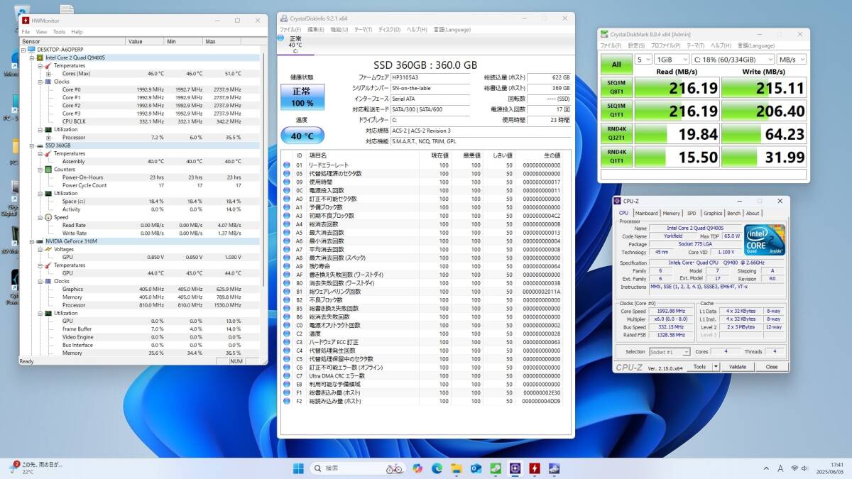 CPU:Core2 Quad Q9400S(換装済み) Mem:PC2-6400 6GB