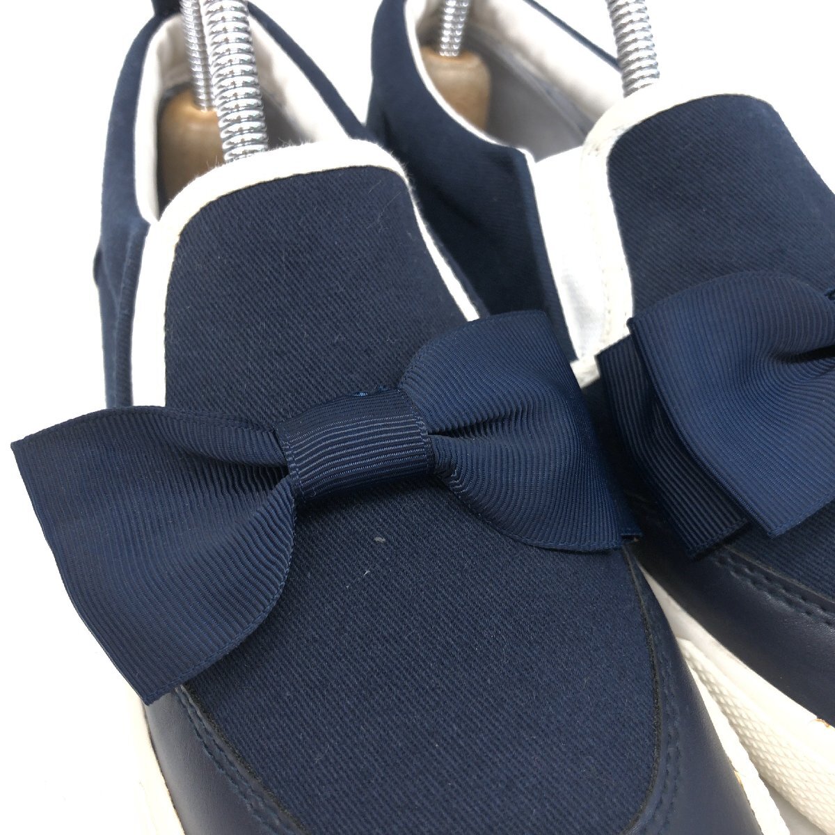 ●KUMIKYOKU クミキョク 組曲 ウィングチップ リボン スリッポン 24cm 紺 ネイビー スニーカー ママ兼用サイズ キッズ ジュニア 女の子