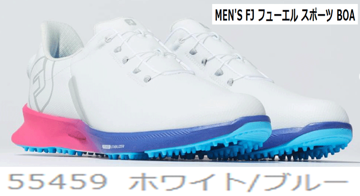新品■フットジョイ■フューエル スポーツ ボア スパイクレス■55459■ホワイト/ブルー■24.5CM■W=EEE■卓越した快適性とフィット感■