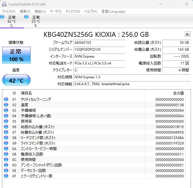 • SSD:新品NVMe.256GB