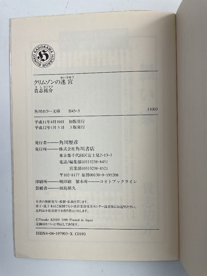 Product name: クリムゾンの迷宮 平成12年 2000年発行【K149069】