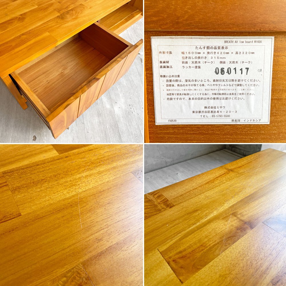 Product name: ♪ ウニコ unico ブレス BREATH AVボード ローボード チーク材 無垢材 抽斗2杯 スライドレール W160cm 廃番