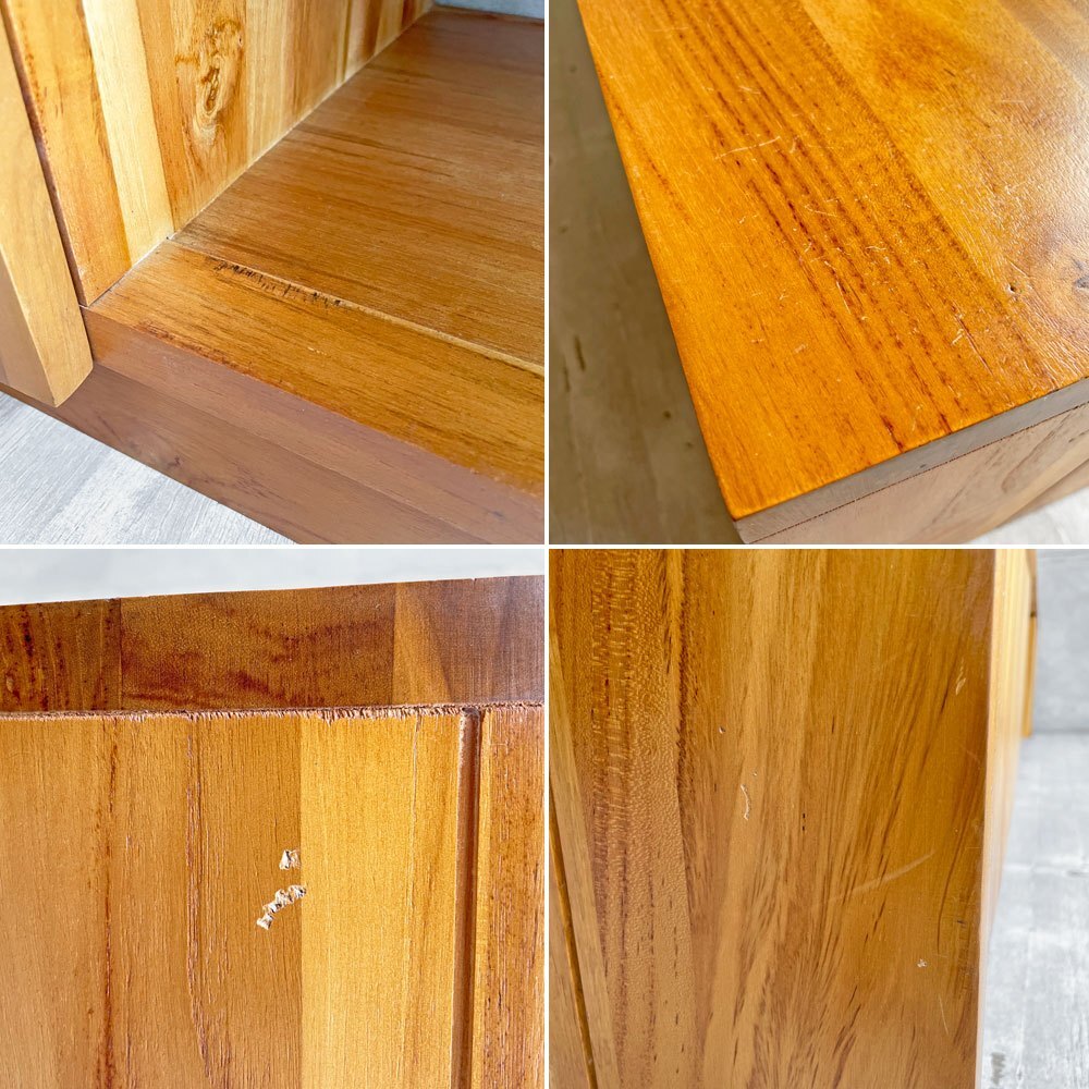 チーク無垢材の綺麗な杢目と力強さが感じられ、ナチュラルスタイルや西海岸スタイルなどその明るい色合いを活かし、様々なテイストで馴染みつつも存在感を発揮してくれる一台です。