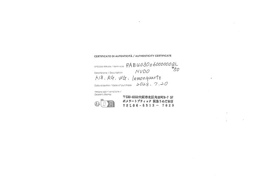 Product name: ポメラート リング レモンクォーツ ヌード プチ 50号 K18PG/WG 保証書 指輪 BLJ 大幅値下げ品