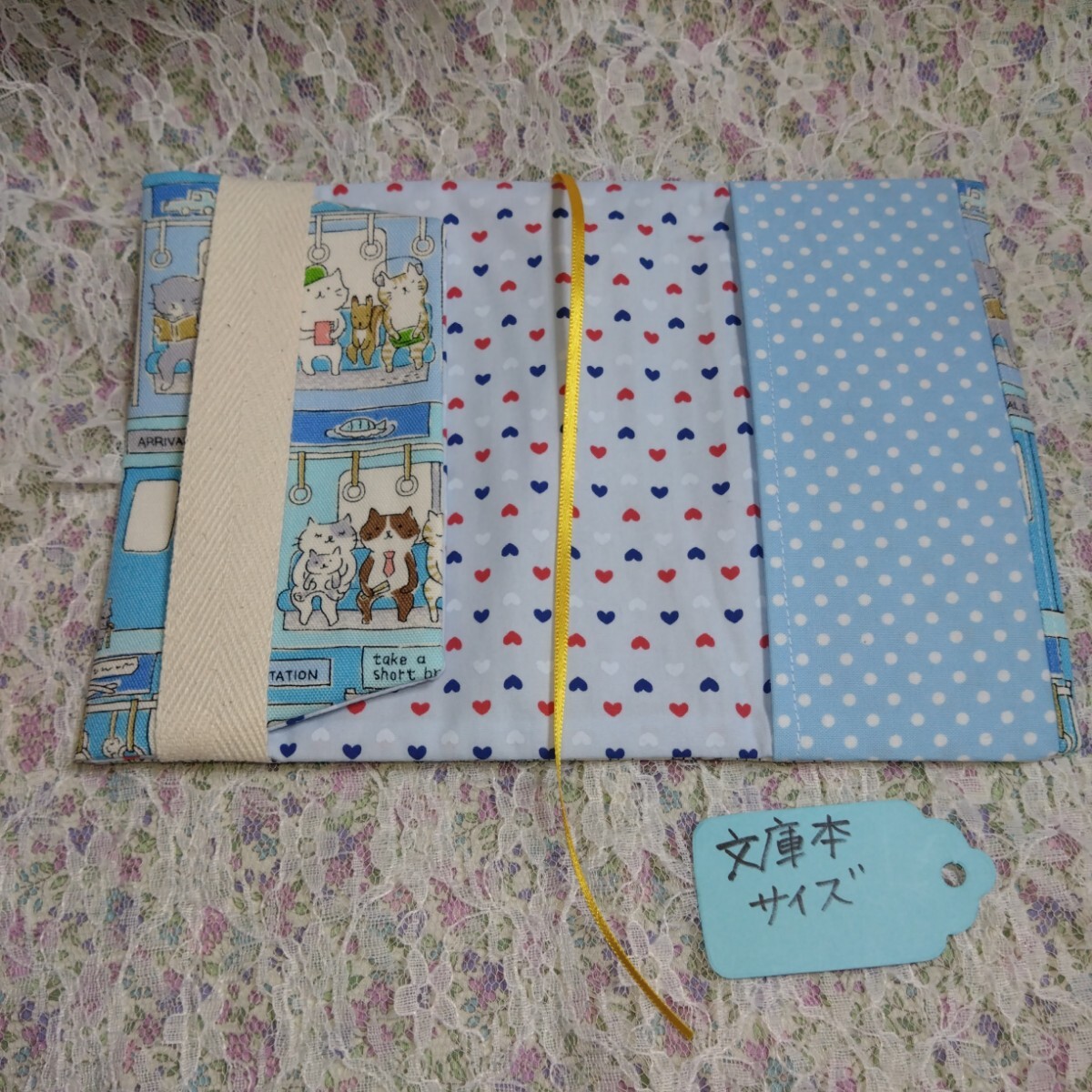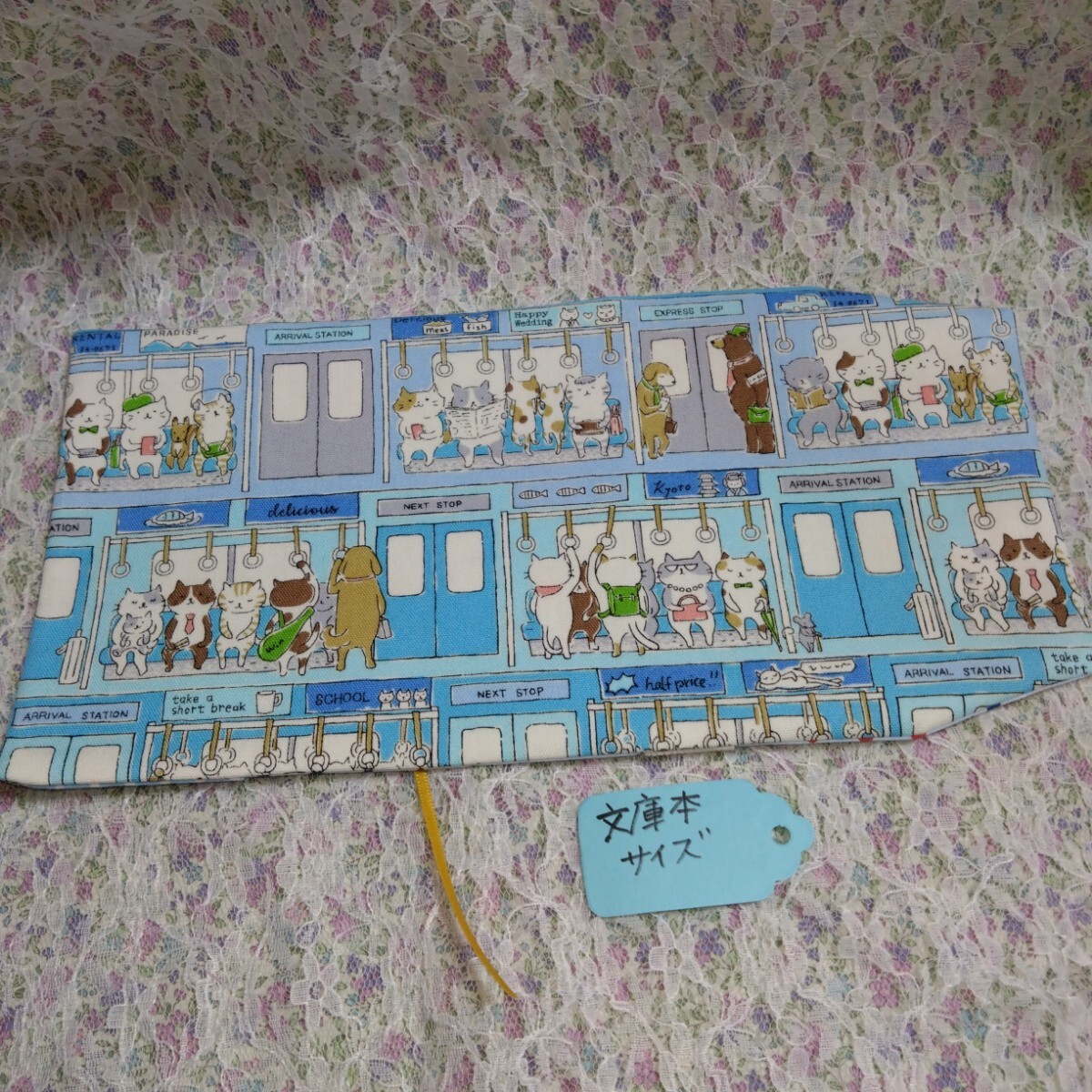 Product name: ブックカバー 文庫本size☆電車猫 水色  ハンドメイド