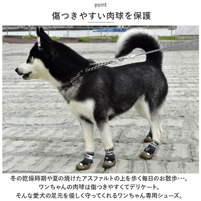 ・冬の乾燥時期や夏の焼けたアスファルトの上を歩く毎日のお散歩・・・。ワンちゃんの肉球は傷つきやすくてデリケート。そんな愛犬の足元を優しく守ってくれるワンちゃん専用シューズ。
