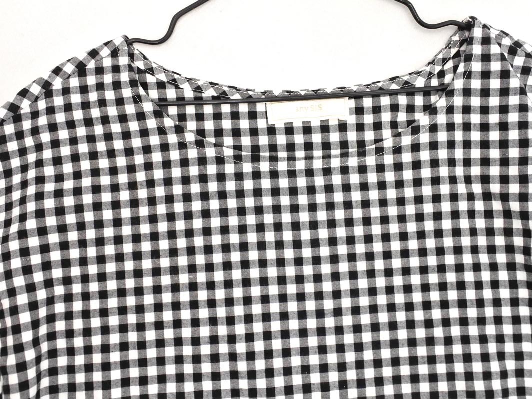 Product name: ネコポスOK any SiS エニィスィス ギンガムチェック フレアスリーブ ブラウス シャツ size1/白x黒 ■◆ ☆ fga1 レディース