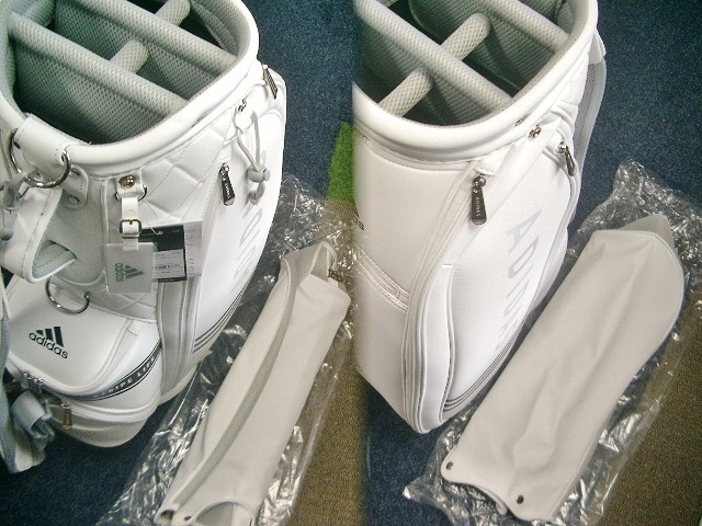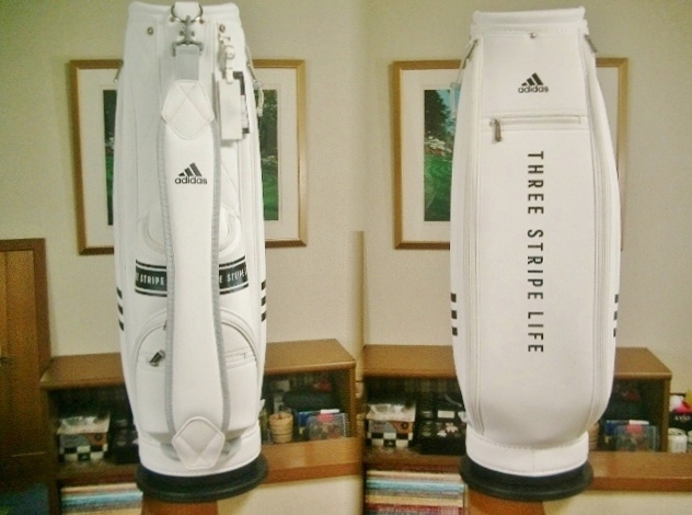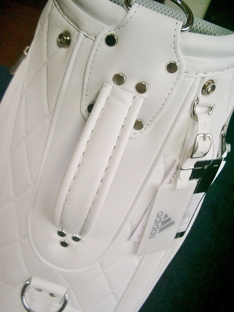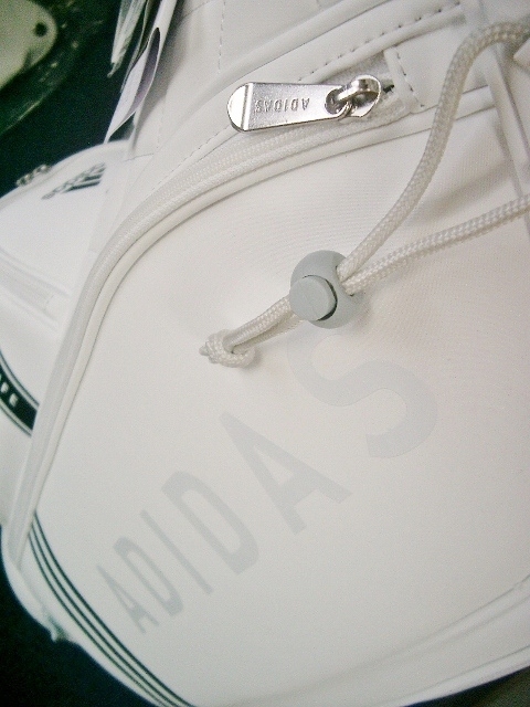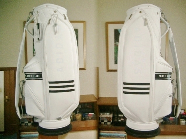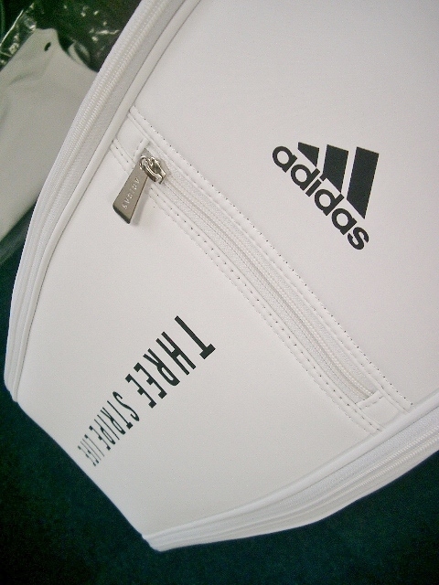 未使用 アディダス レディース スポーツ・モデル 横3本ライン 合皮レザー 白黒 ゴルフバッグ