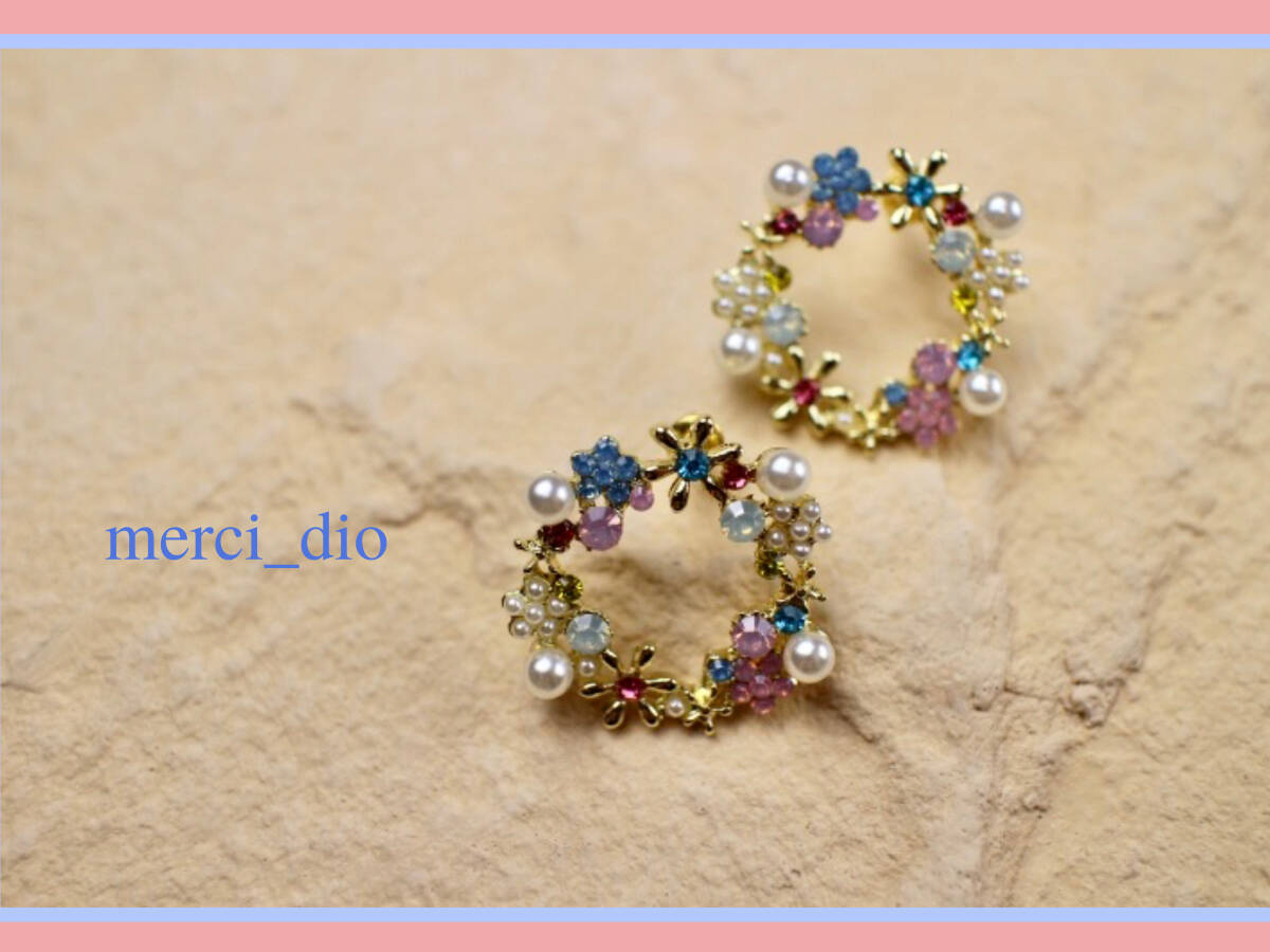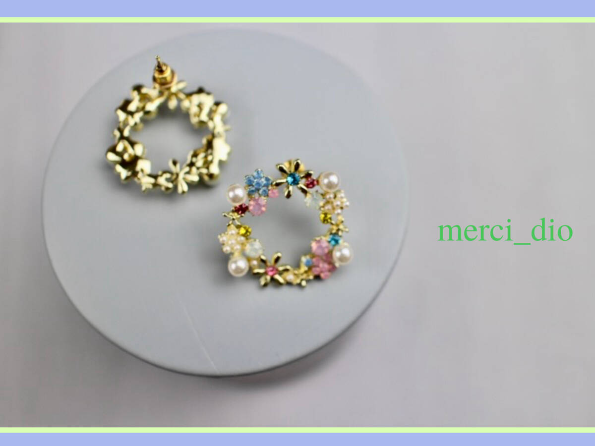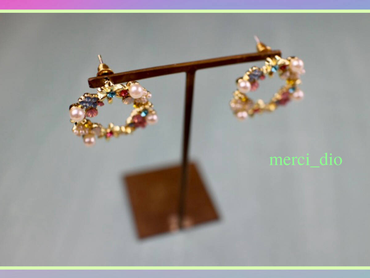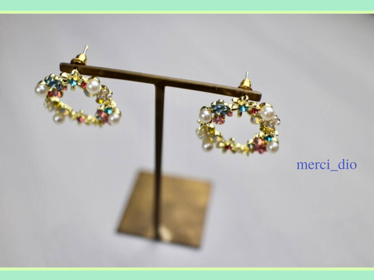 Product name: シップス SHIPS ゴールドカラー フラワー パール ラインストーン リングスタッドピアス サークル 新品 未使用 トゥモローランド