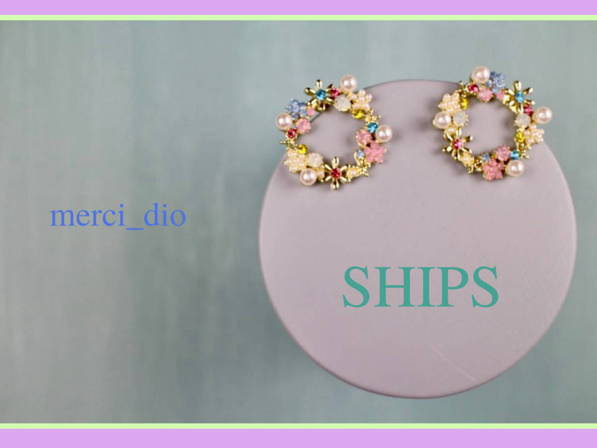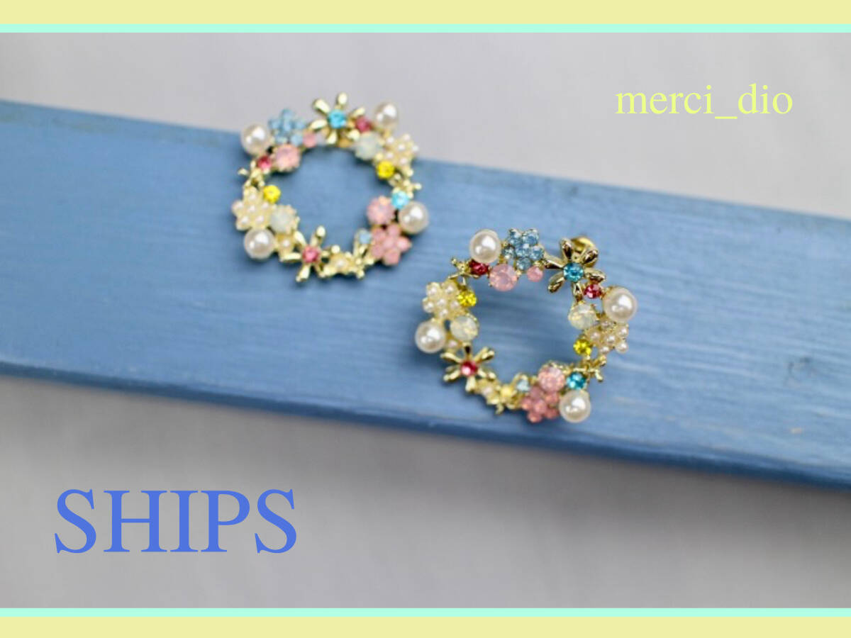 シップス SHIPS ゴールドカラー フラワー パール ラインストーン リングスタッドピアス サークル 新品 未使用 トゥモローランド