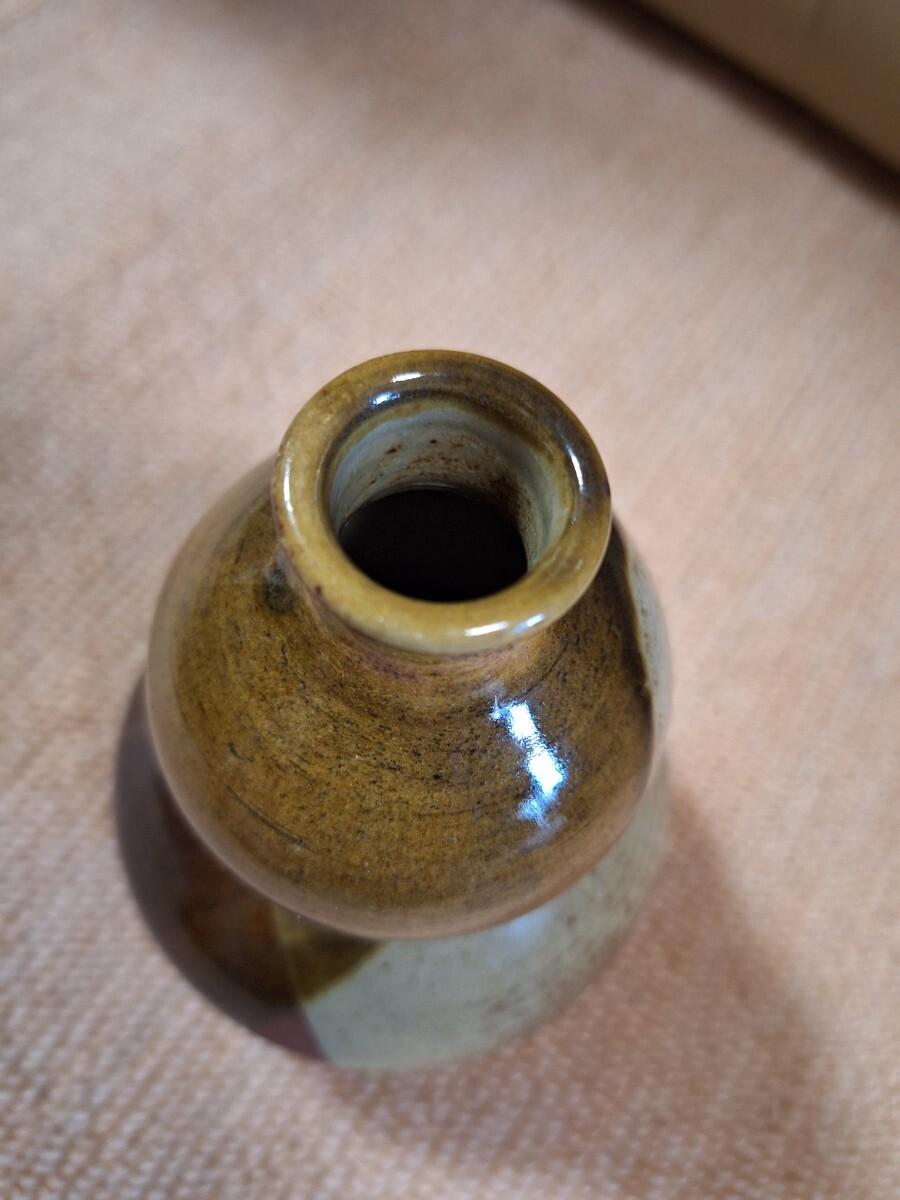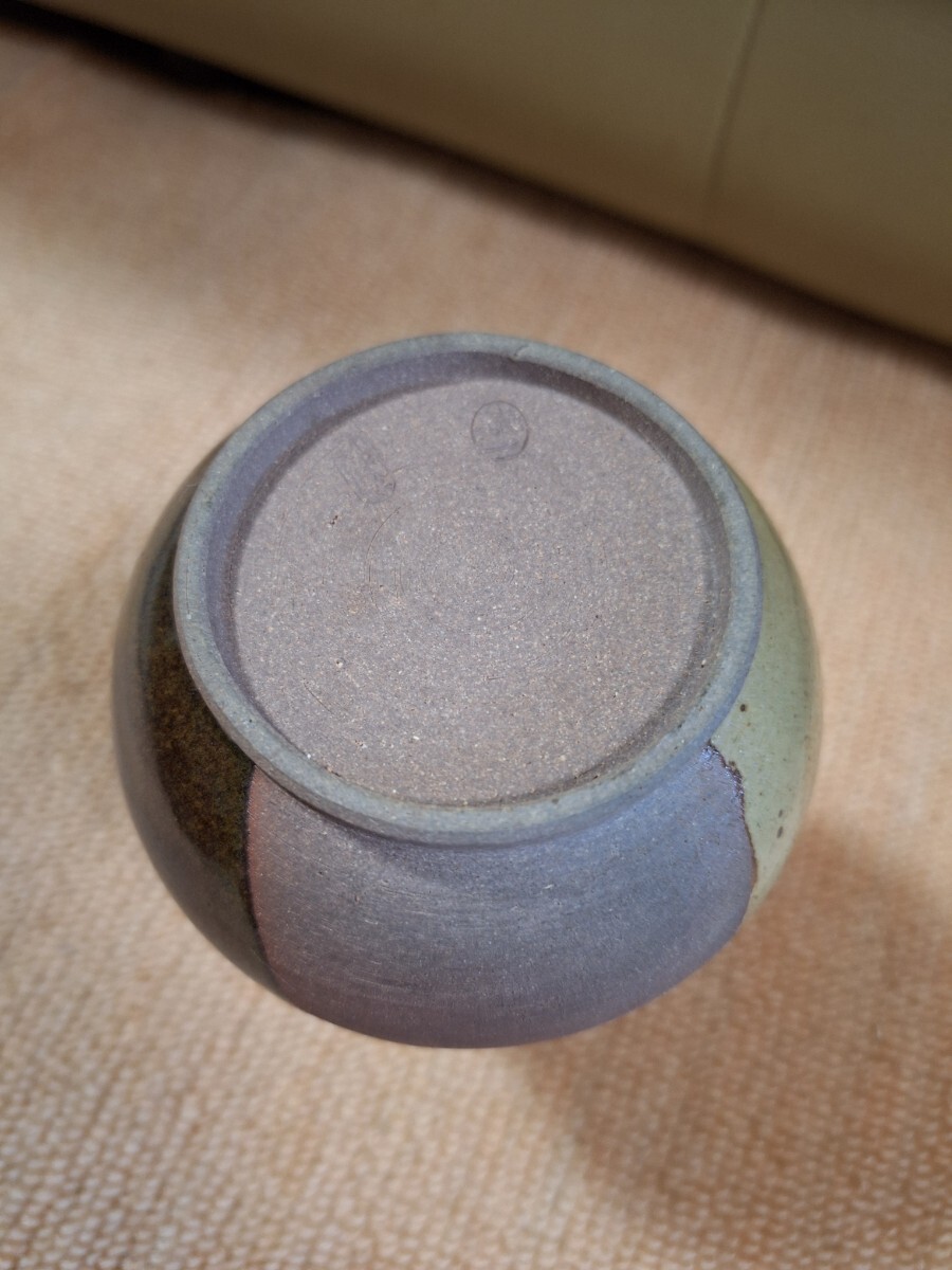 虫明焼、岡山県無形文化財、黒井一楽、掛け分けの一輪挿しです。高さ約15cm、箱はありません。