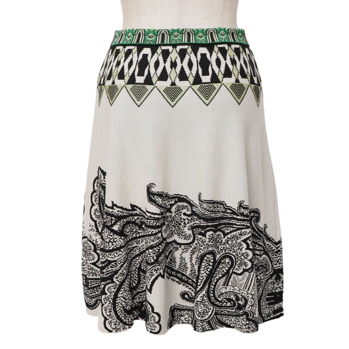 MH8162☆エトロ ETRO ニットスカート フレアスカート ウエストゴム ペイズリー柄 総柄 コットン混 アイボリー系 サイズ40