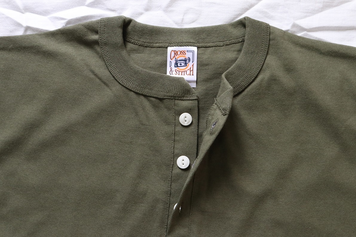 LLサイズ アーミーグリーン ヘンリーネック メンズ 半袖 Tシャツ 6.2Oz ヘビーウェイト 男性 ミリタリー カーキ オリーブ